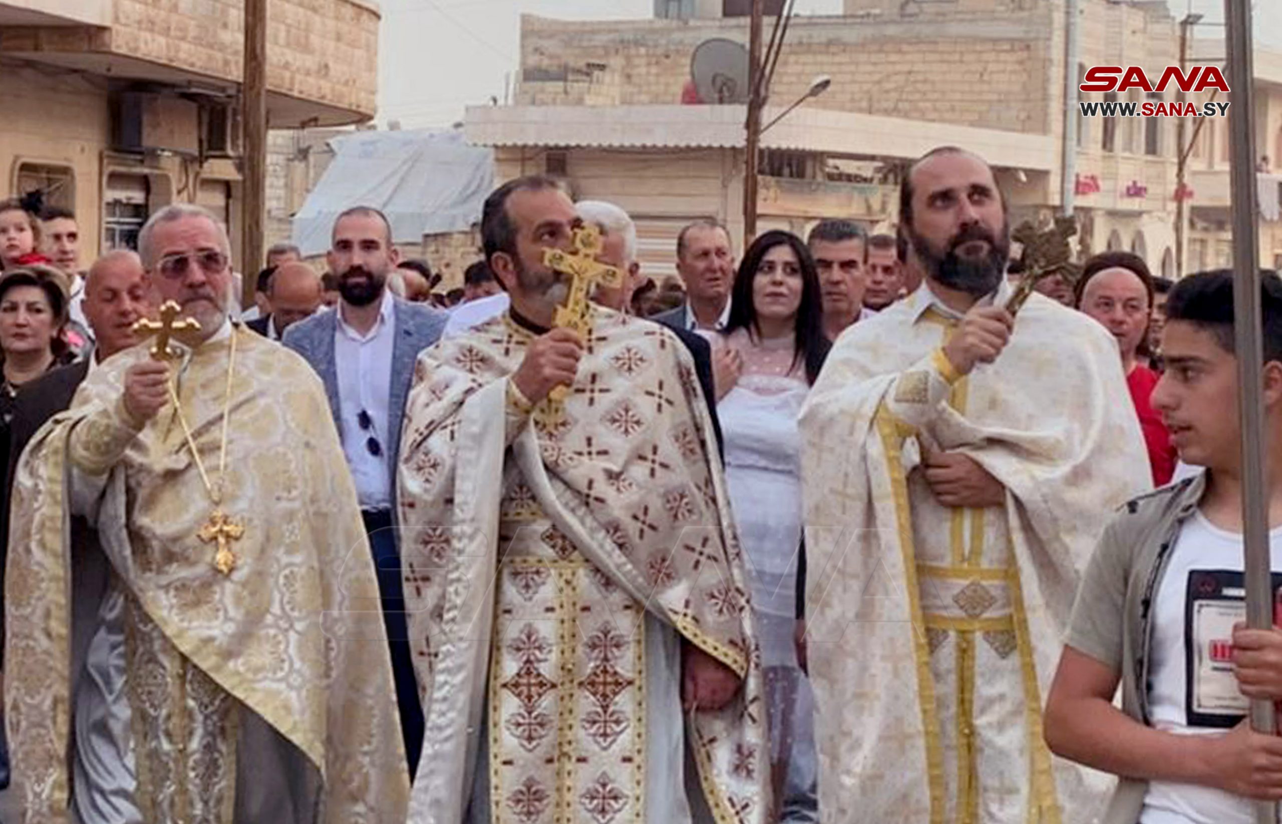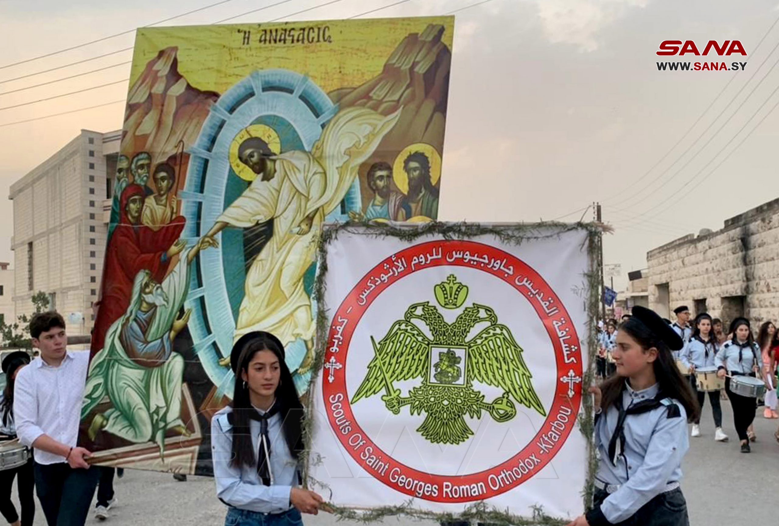 Hama, 26 abr (SANA) Procesiones festivas tuvieron lugar el martes en la localidad de Kafarbehem en la provincia central de Hama para celebrar el Lunes de Pascua..