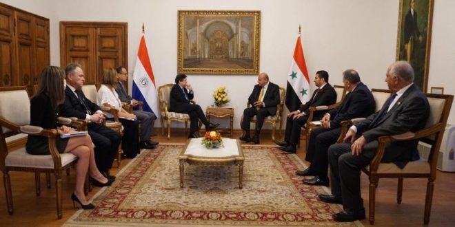 Asunción, 28 abr (SANA) El ministro de Relaciones Exteriores de Paraguay, Euclides Acevedo, recibió este jueves a Sami Salameh, Embajador no residente de la República Árabe Siria en Paraguay, en la sede del Ministerio de Relaciones Exteriores de este país sudamericano.