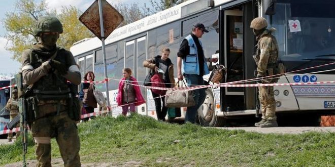“Las Fuerzas Armadas de la Federación de Rusia garantizan la seguridad del paso del convoy humanitario con civiles evacuados del territorio de la planta de Azovstal al territorio controlado por el régimen de Kiev”