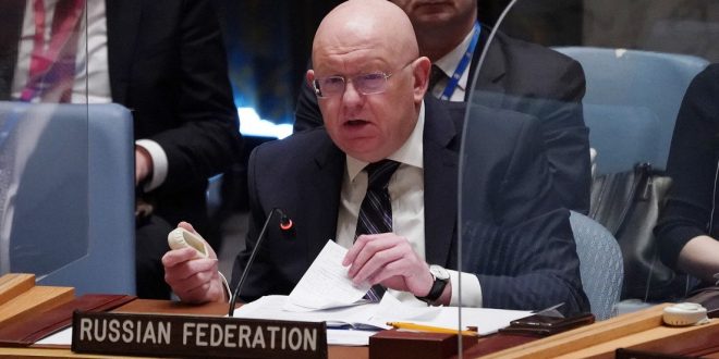 Nueva York, 6 may (SANA) El representante permanente de Rusia ante el Consejo de Seguridad de la ONU, Vasili Nebenzia, denunció una guerra mundial en el sector económico y calificó de “robo” las medidas económicas de Occidente contra Rusia.