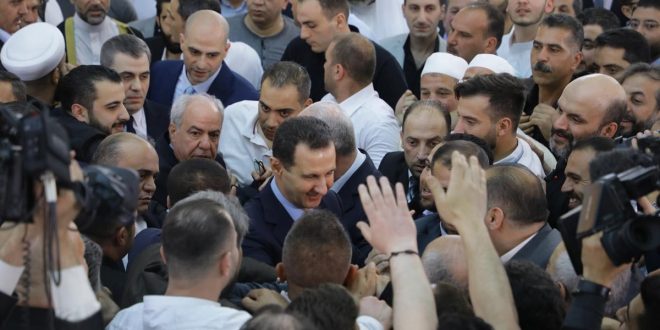 Presidente Bashar Al-Assad, efectúa el rezo de Eid Al-Fitr en la Mezquita Al-Hasan en el barrio capitalino de Midan
