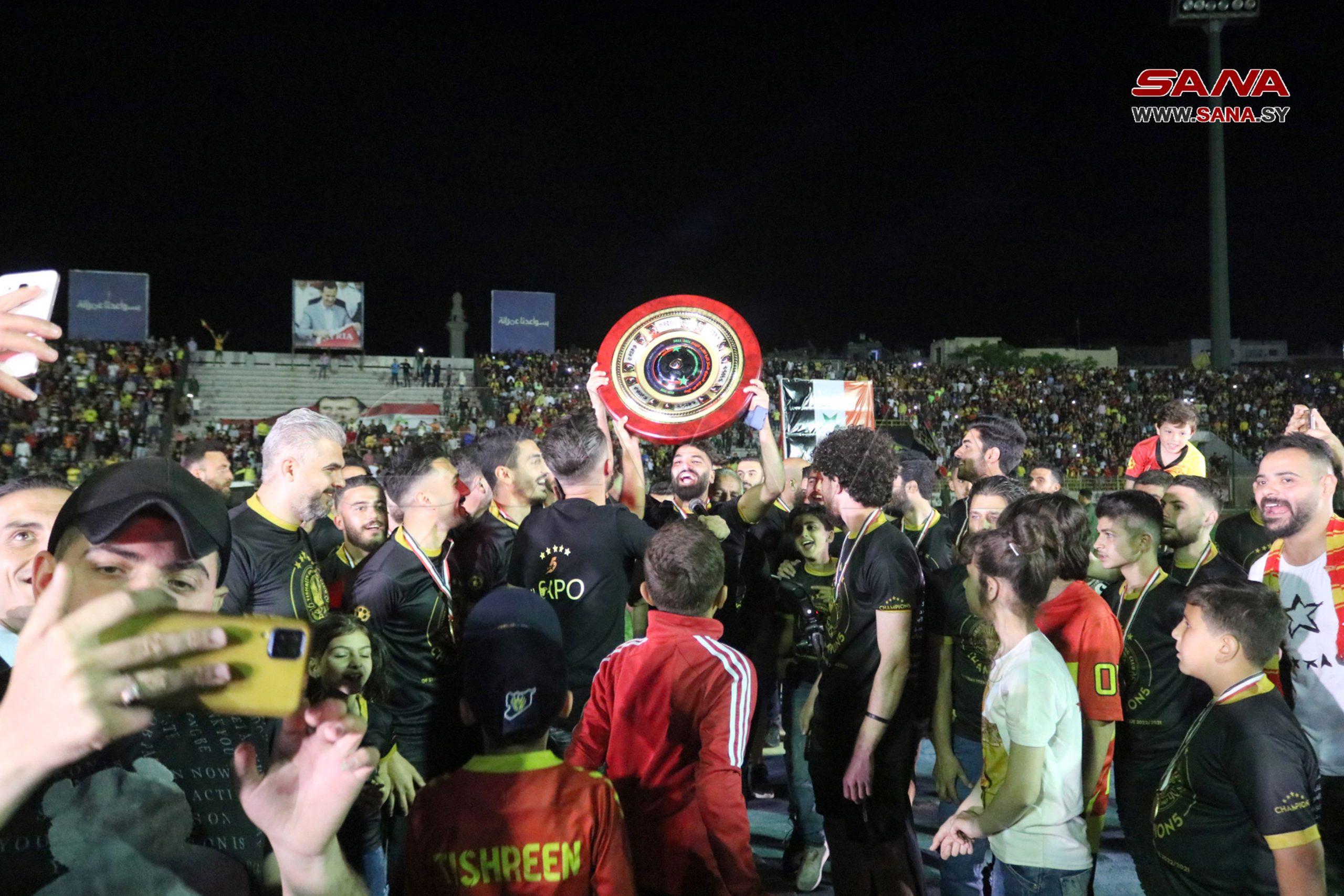 Latakia, 8 may (SANA) La ceremonia de coronación del equipo Tishreen (de la provincia de Latakia) como Campeón de la Primera Liga de Fútbol se efectuó en el Estadio al-Basel en Latakia.
