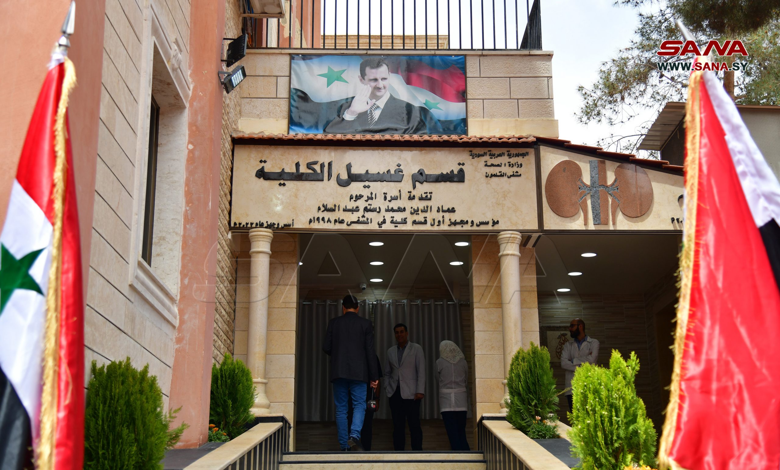 Rif Dimashq, 09 my (SANA) El ministro de Salud, Hassan el-Ghebash reabrió la Sección de Diálisis en el Hospital de Nabek con una capacidad de 19 camas subsidiadas por la sociedad civil.