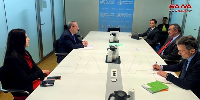 Ginebra, 10 may (SANA) El representante permanente de Siria ante las oficinas de las Naciones Unidas en Ginebra, Hossam Eddin Ala, repasó con el director general de la Organización Mundial de la Salud (OMS), Tedros Ghebreyesus, las vías de desarrollar la cooperación entre Siria y la Organización en aras de apoyar la prestación de atención médica.