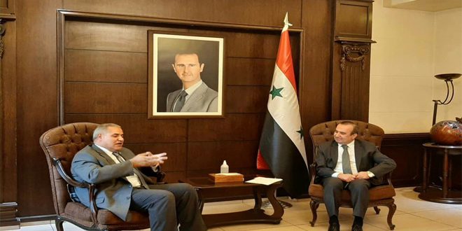 Damasco, 12 may (SANA) El ministro de Administración Local y Medio Ambiente de Siria, Hussein Makhlouf, examinó con el Subdirector General de la Organización de las Naciones Unidas para la Agricultura y la Alimentación (FAO), Abdul Hakim Al-Waer y el representante de la organización en Damasco, Mike Robson, y la delegación acompañante, la posibilidad de brindar más apoyo a Siria e implementar nuevos proyectos conjuntos durante el próximo período de acuerdo con los mecanismos aprobados y fortalecer la cooperación existente entre las dos partes en el ámbito medioambiental.