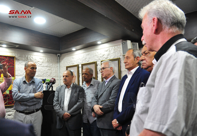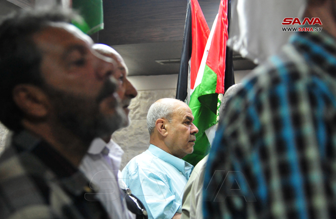 Participaron en el mitin varios representantes de facciones palestinas, partidos sirios y palestinos, así como figuras culturales y sociales.
