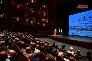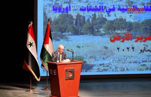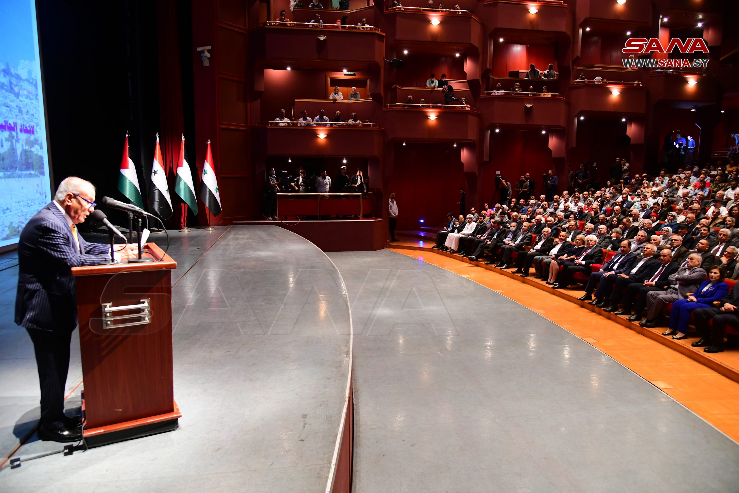 El evento se celebra bajo el lema “Pacto y Promesa… para liberar la tierra” en la sede de la Casa al-Assad para la Cultura y las Artes en Damasco.