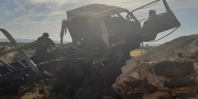 La Policía informó al corresponsal de SANA que la mina explosionó al pasarse una camioneta “Pick Up” en los alrededores del pueblo de al-Zara en Hama.