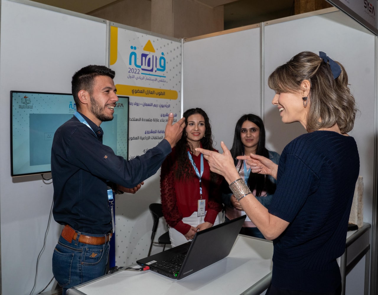 Durante su visita al Primer Foro de Inversión Empresarial “Oportunidad 2022” organizado por la Unión Nacional de Estudiantes Sirios y la Asociación de Jóvenes Empresarios, en la Universidad de Damasco, la Primera Dama fue actualizada sobre una amplia gama de proyectos juveniles que participan en este foro y contactó con sus dueños y conversó con ellos sobre el pensamiento emprendedor, la ambición y el ambiente necesario para transformarlos en proyectos exitosos y económicamente viables.