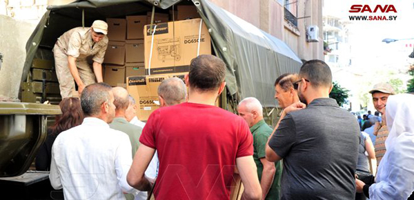 Damasco, 5 jun (SANA) Se han distribuido este sábado 300 canastas de alimentos e insumos de salud a las familias necesitadas, además de entregar generadores eléctricos a instituciones de servicio en las localidades de Sahnaya y Ashrafieh Sahnaya, al sur de esta capita.