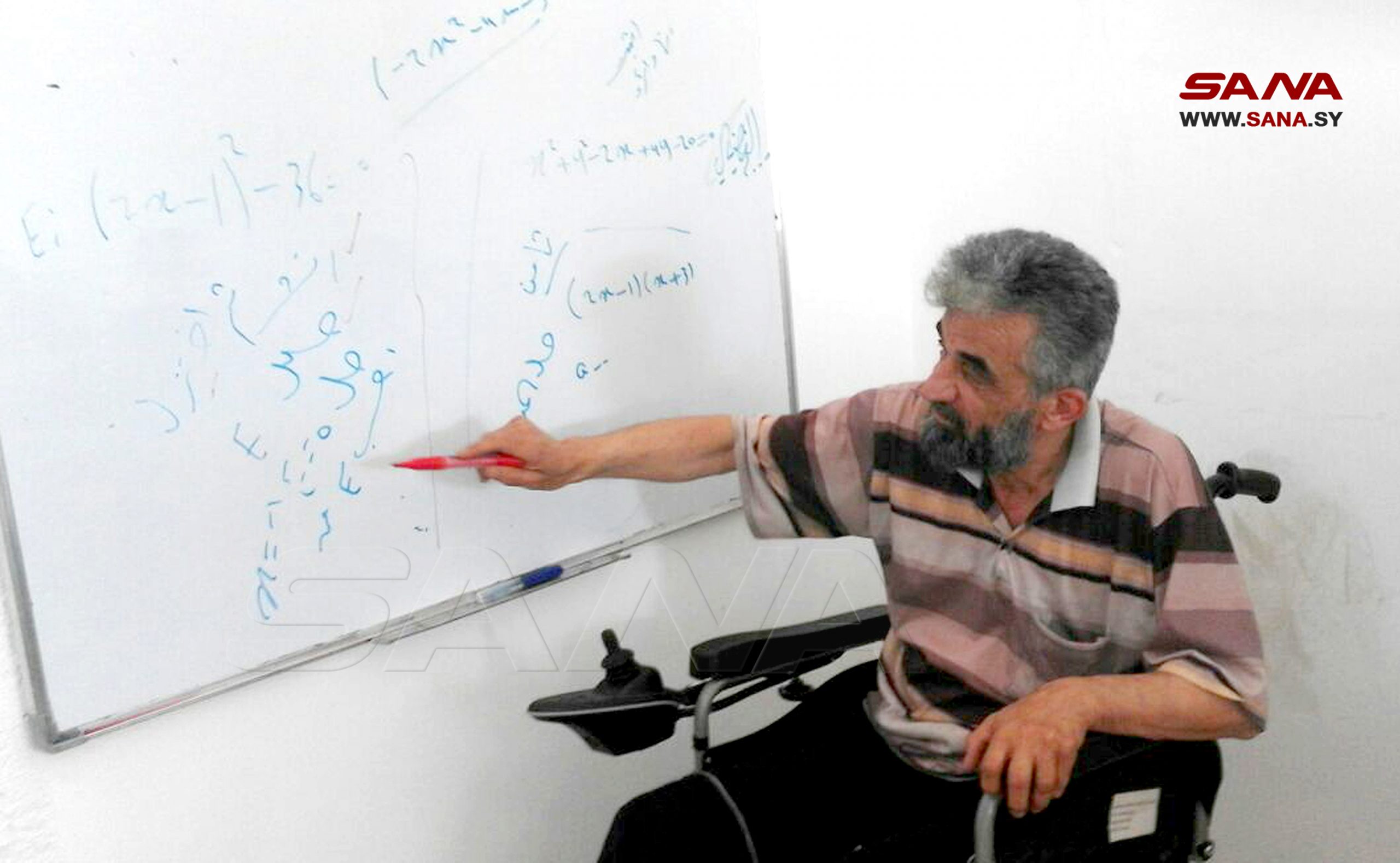Sweida, 5 jun (SANA) El profesor de matemáticas Salim Al-Mahithawi, de 59 años, de la provincia sureña de Sweida, sufrió un accidente de paracaidismo en 1982, lo cual lo dejó paralítico.
