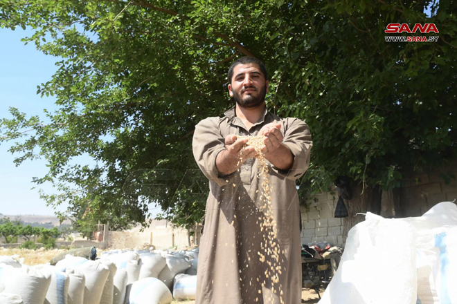 Alepo, 06 jun (SANA) Los agricultores de la zona de Al-Safira, al sureste de Alepo, han comenzado a cosechar su cultivo de trigo y entregarlo sus cultivos a los centros de comercialización en la gobernación, donde las áreas cultivadas de trigo de regadío para este año ascendieron a 12.500 hectáreas.