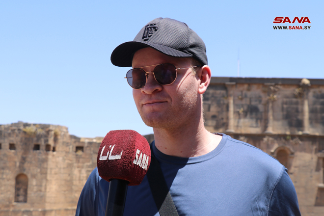 En declaraciones a SANA, el turista Carlos Hans de Brasil dijo: “vine a Bosra y me sorprendió el hermoso paisaje y el trato amable de la gente, y vi el anfiteatro, que es muy impresionante y hermoso”.