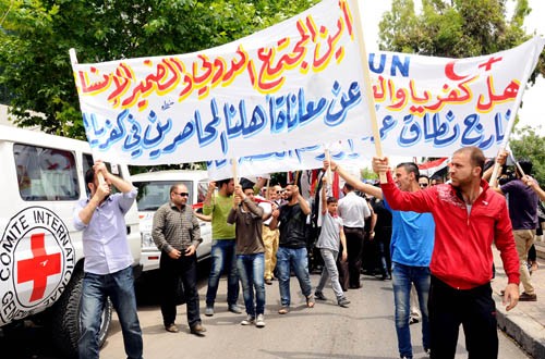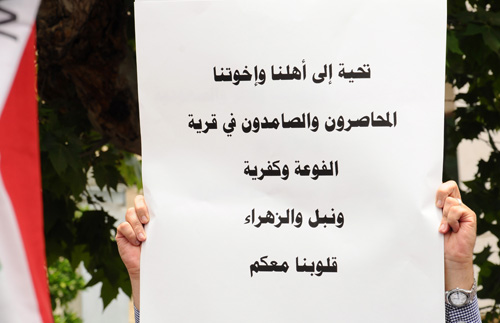 Numerosos sirios tomaron las calles de Damasco este sábado para manifestar su solidaridad con los vecinos de los pueblos de al-Foaa y Kafraya en el campo de Idleb, asediados por las organizaciones terroristas.