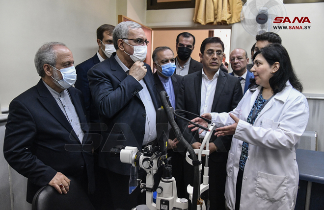 Damasco, 08 jun (SANA) El ministro de Salud, Hassan Ghabash, y su par iraní, Bahram Ainollahi, recorrieron este miércoles varios hospitales y laboratorios especializados en la fabricación de medicamentos crónicos y productos cosméticos en la capital Damasco.