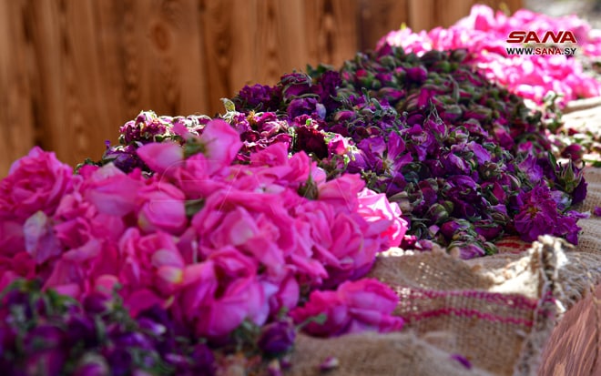11/06/2022 Foto de los botones y pétalos de la Rosa de Damasco después de recogerlos de los campos en el norte de Damasco. 2022-06-11 samer
