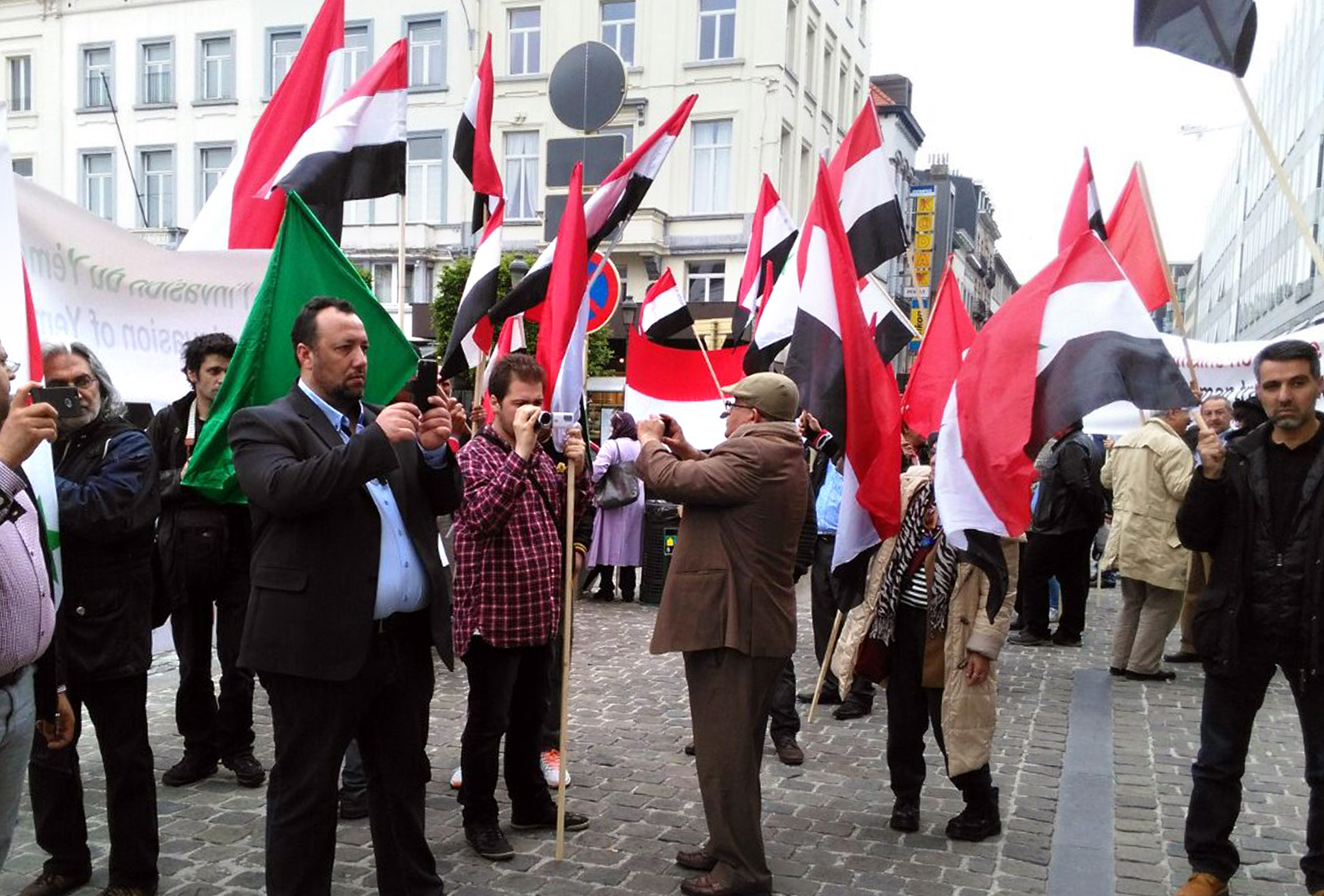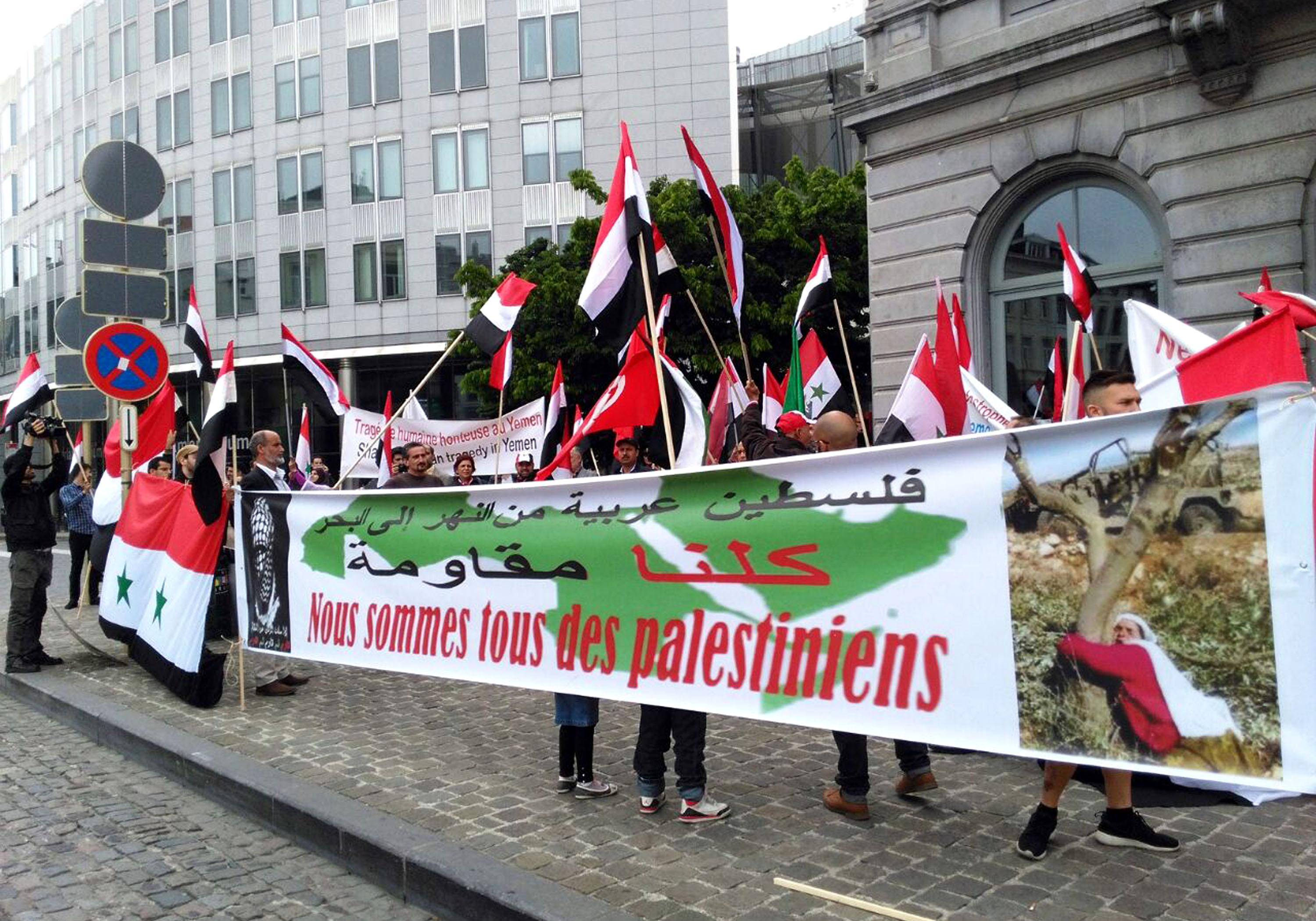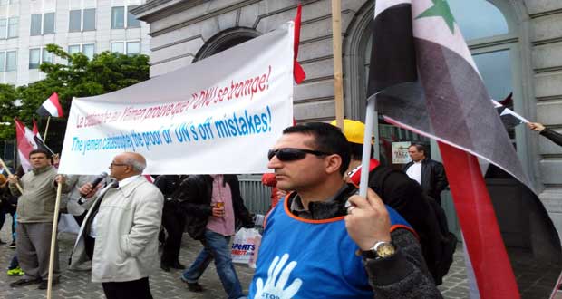 Grupos de asociaciones árabes y francesas organizaron una sentada frente al Parlamento Europeo en la capital belga Bruselas para denunciar el apoyo brindado por algunos países, encabezados por Francia y Arabia Saudita a los terroristas.