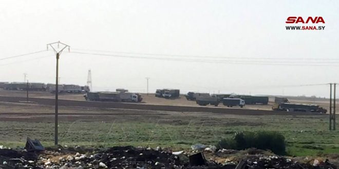 La cámara de SANA documentó con fotos el saqueo y el traslado de una caravana de 40 camiones cargados de trigo desde la región siria de al-Jazira hacia las bases de Washington en el norte de Irak.