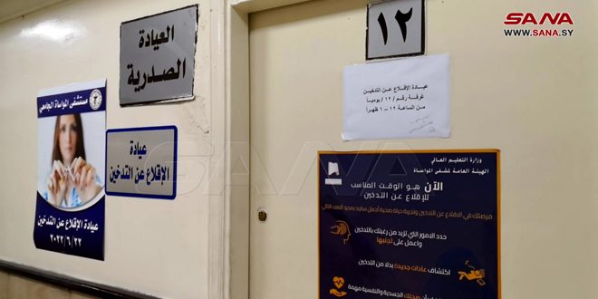 El director del Hospital Al-Mowasat, Issam Al-Amin, explicó a SANA que la clínica brindará servicios gratuitos para quienes deseen dejar de fumar a través de especialistas en psiquiatría y enfermedades respiratorias.