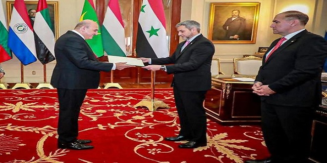 Asunción, 28 jun (SANA) El presidente de la República del Paraguay, recibió este martes las cartas credenciales de Sami Salameh, como embajador no residente de la República Árabe Siria en el Paraguay.