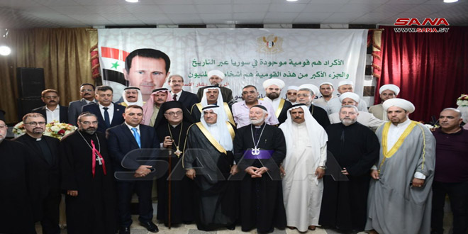 “Nosotros, los jeques y dignatarios de los clanes y tribus kurdo-sirias en la provincia de Alepo, reafirmamos nuestra posición de apoyo al presidente Bashar al-Assad y estamos en la misma trinchera con el Ejército Árabe Sirio para defender la integridad territorial y expulsar las ocupaciones estadounidense y turca y sus lacayos de grupos terroristas armados y milicias separatistas”, afirmó el texto de la declaración de la que SANA recibió una copia.