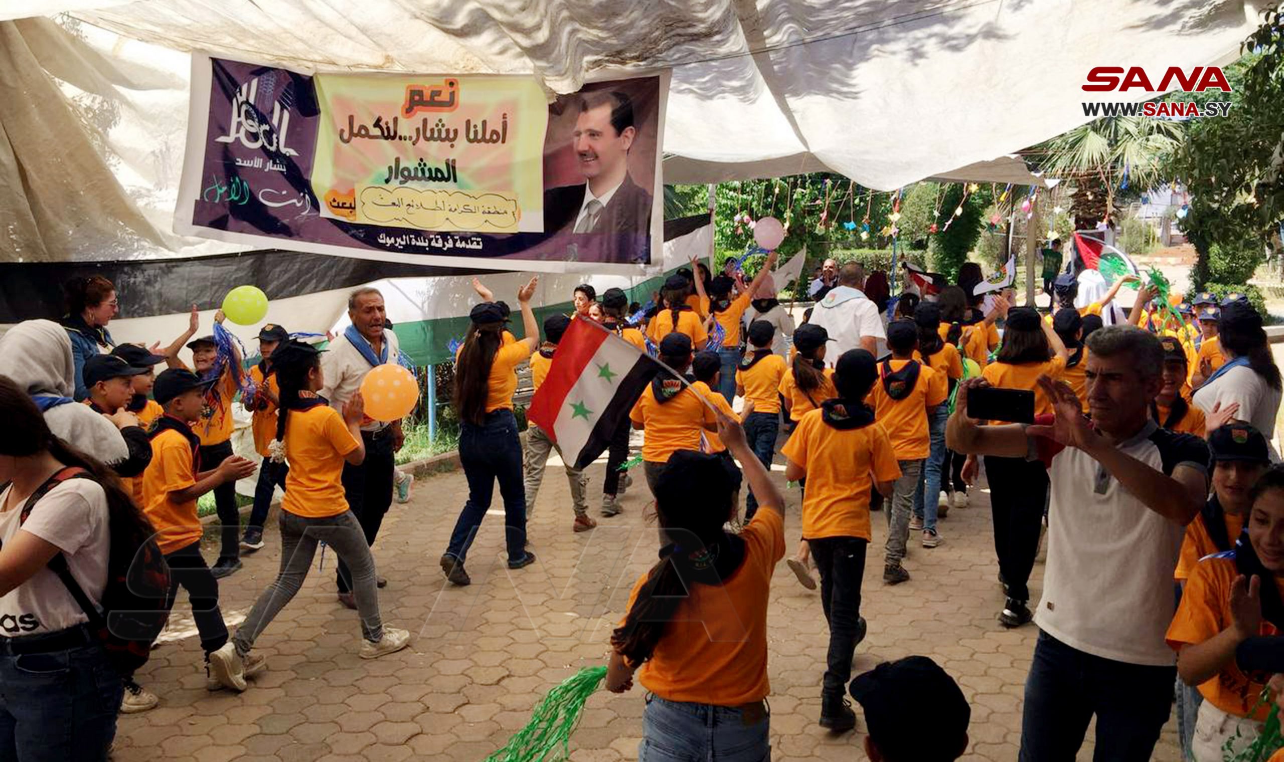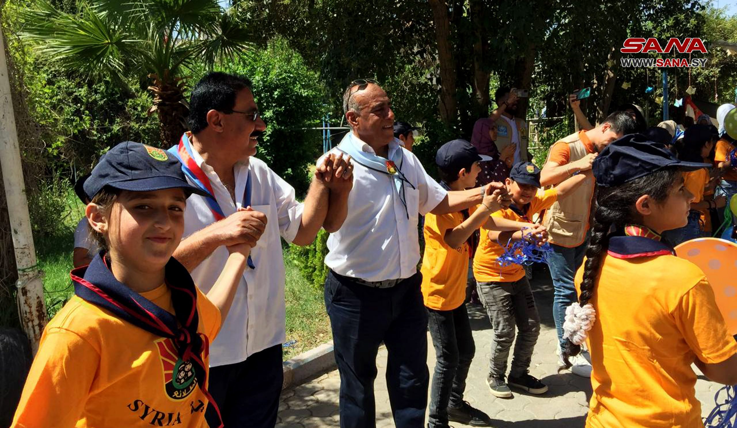 El organizador del evento, Ahmed al-Salem, explicó a SANA que el evento forma parte de los campamentos de verano para los pioneros del Baath, que es el segundo lote que se llevará a cabo bajo la supervisión del Comité de Dignidad y se centra en dar entretenimiento a los niños.