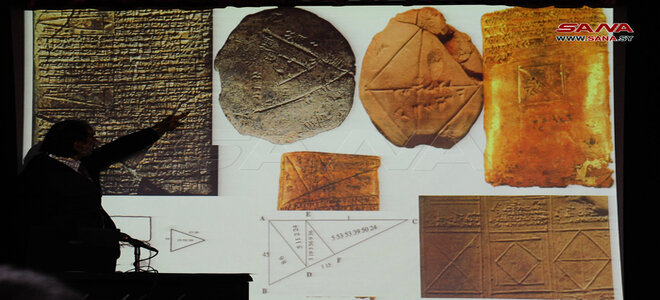 Damasco, 04 jul (SANA) El arqueólogo e historiador de la Dirección General de Antigüedades y Museos de Siria, Mahmoud Al-Sayed, dijo que Pitágoras y Euclides no fueron los primeros en introducir por primera vez los conceptos de triángulos, cuadrados, rectángulos y círculos, y ello es comprobado por los hallazgos arqueológicos sirios e iraquíes.