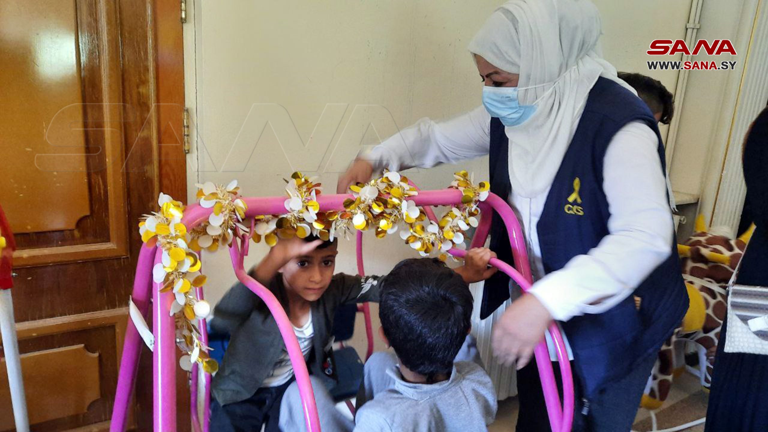 El director de la rama Kinan Bakro explicó en declaraciones al corresponsal de SANA que la iniciativa benefició a 70 niños enfermos de cáncer que recibieron ropa del Eid en una atmósfera de recreo, y señaló que el objetivo es dibujar sonrisas en los labios de niños y aliviar la carga financiera que pesa sobre sus familias.