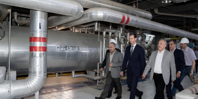 “Es un mensaje de que todos los obstáculos y las dificultades caen ante la voluntad y determinación de los trabajadores que mostraron dedicación y honestidad”, dijo el presidente Bashar Al-Assad durante su inauguración de una unidad generadora de la central eléctrica de Alepo.