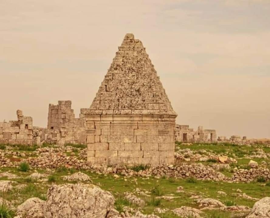 El sitio también abarca una gran cantidad de santuarios y entierros distintivos, representativos de la arquitectura que prevalecía en esta región de Siria. Entre las más destacadas de estas tumbas es el entierro de la pirámide. Este tipo son entierros gigantes en forma de pirámides y la mayoría de ellos tienen 10 metros de altura, algunos tienen 15 metros y otros más de 20 metros, aunque la mayoría de los entierros están relativamente destruidos, pero algunos de ellos todavía están allí a pesar de todo este tiempo.