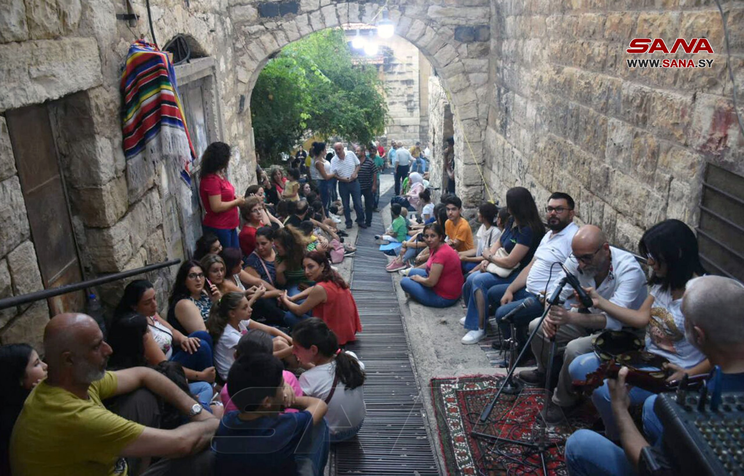 Foto tomada de un descanso de jóvenes sirios tras su participación en las recientes celebraciones del Festival de la Fortaleza y el Valle en Homs