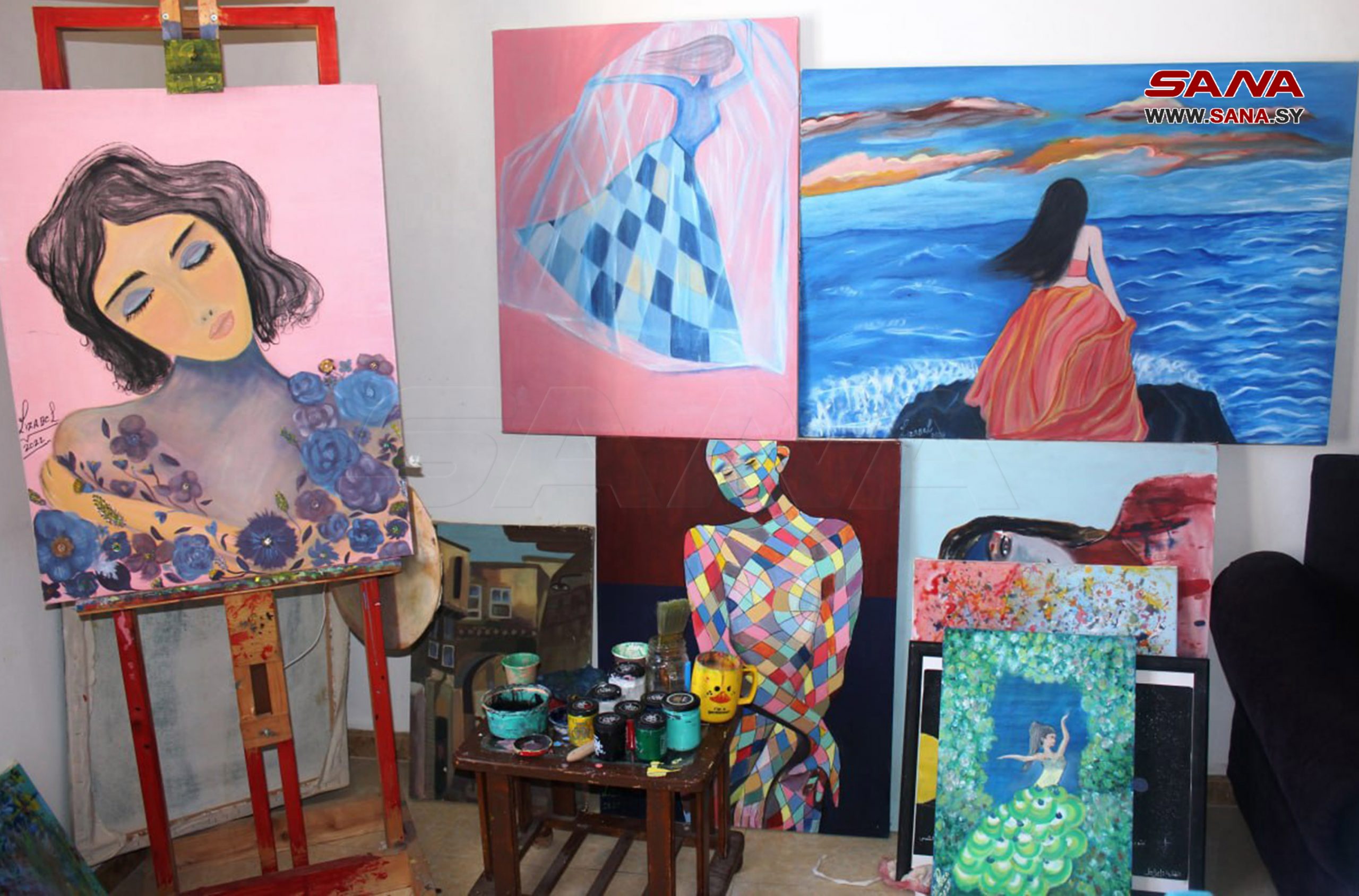 Me encantaba dibujar desde pequeña, sobre todo las antiguas callejuelas de la ciudad antigua de Damasco, además de pintar sobre lienzo, pero lo que más me cautivó fue la mujer y la naturaleza, dijo Ghazi a SANA .