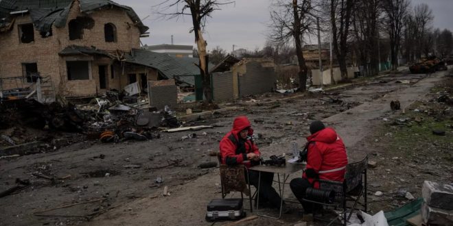 “Cuando ingresamos a Bucha en un automóvil, yo estaba en el asiento del pasajero. Y cuando pasamos por la ciudad, vi los cuerpos de las personas a los lados de las calles, y al mismo tiempo, frente a mis ojos, observé los cuerpos de personas que se colocaban junto a los cadáveres que estaban en el suelo, para brindar la imagen de una muerte masiva”, dijo.