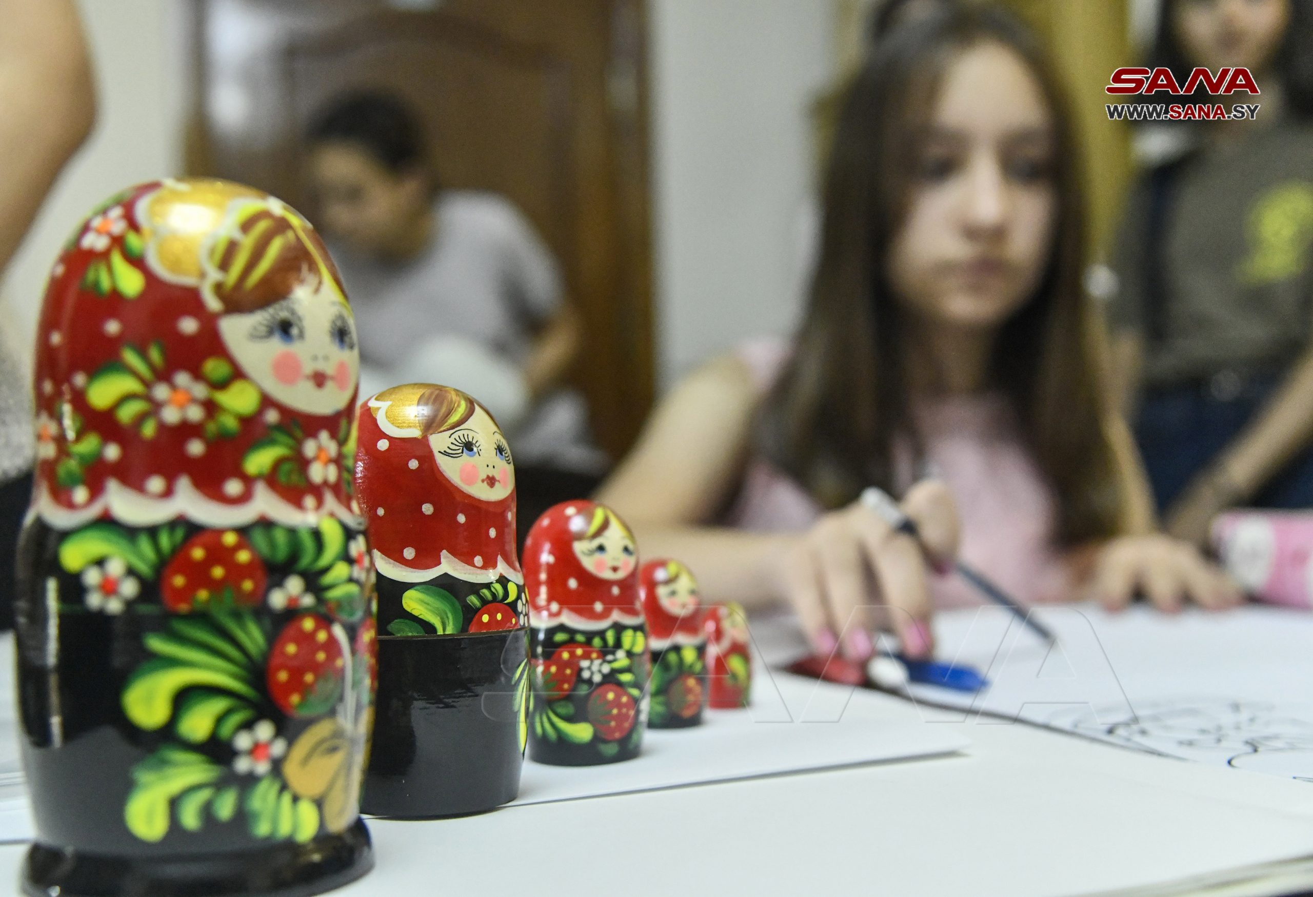 La supervisora del taller, Aya Shehadeh, explicó a SANA que esta muñeca rusa tradicional se ha convertido en uno de los símbolos artísticos antiguos más importantes que expresan el patrimonio ruso.