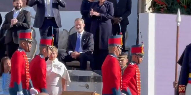 Felipe VI fue el único de los líderes extranjeros presentes en el acto que no se levantó mientras se le rendían honores a la espada que utilizó Bolívar contra las tropas españolas durante la gesta independentista en los países bolivarianos, y que ahora constituye un símbolo anticolonial y de unidad latinoamericana.