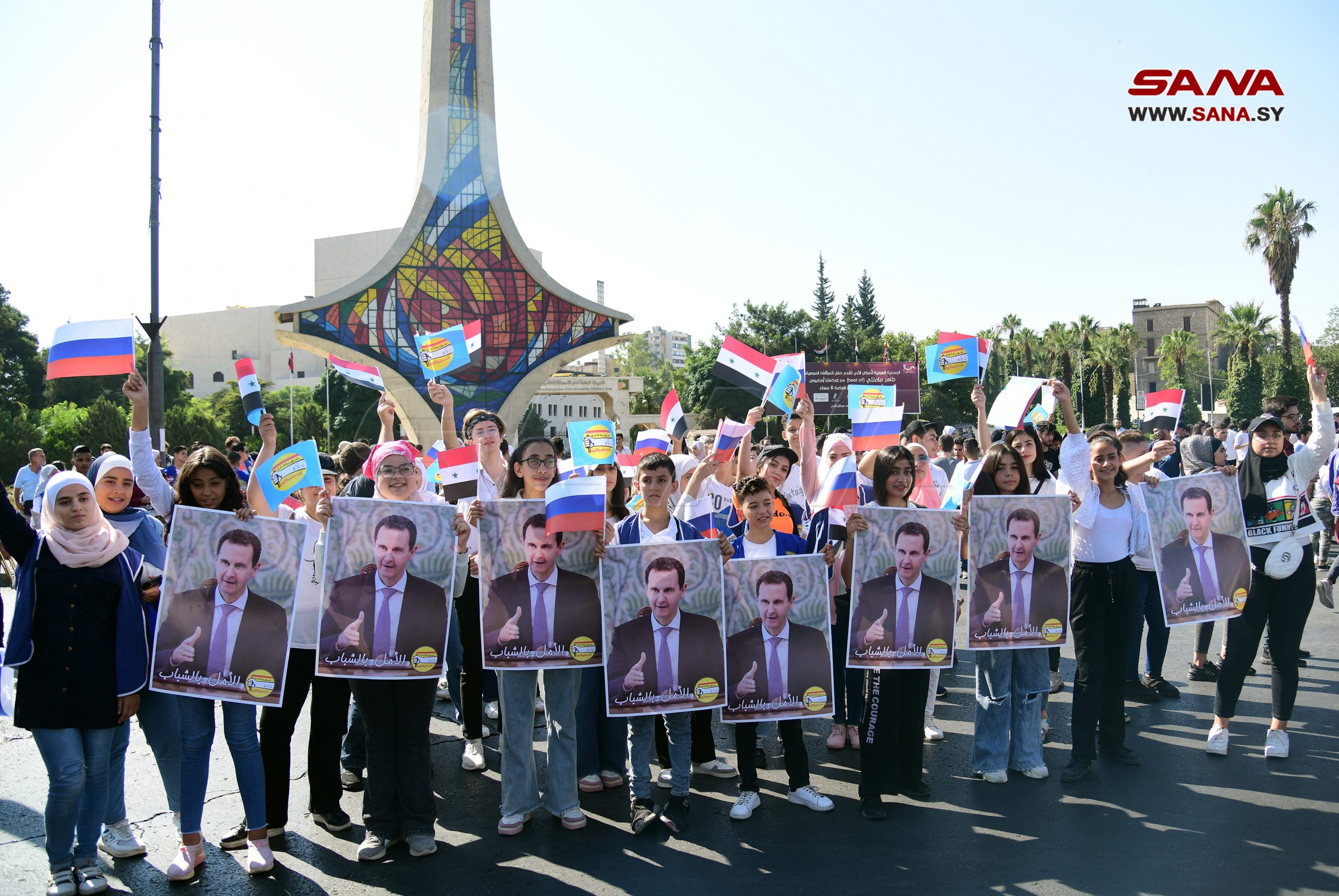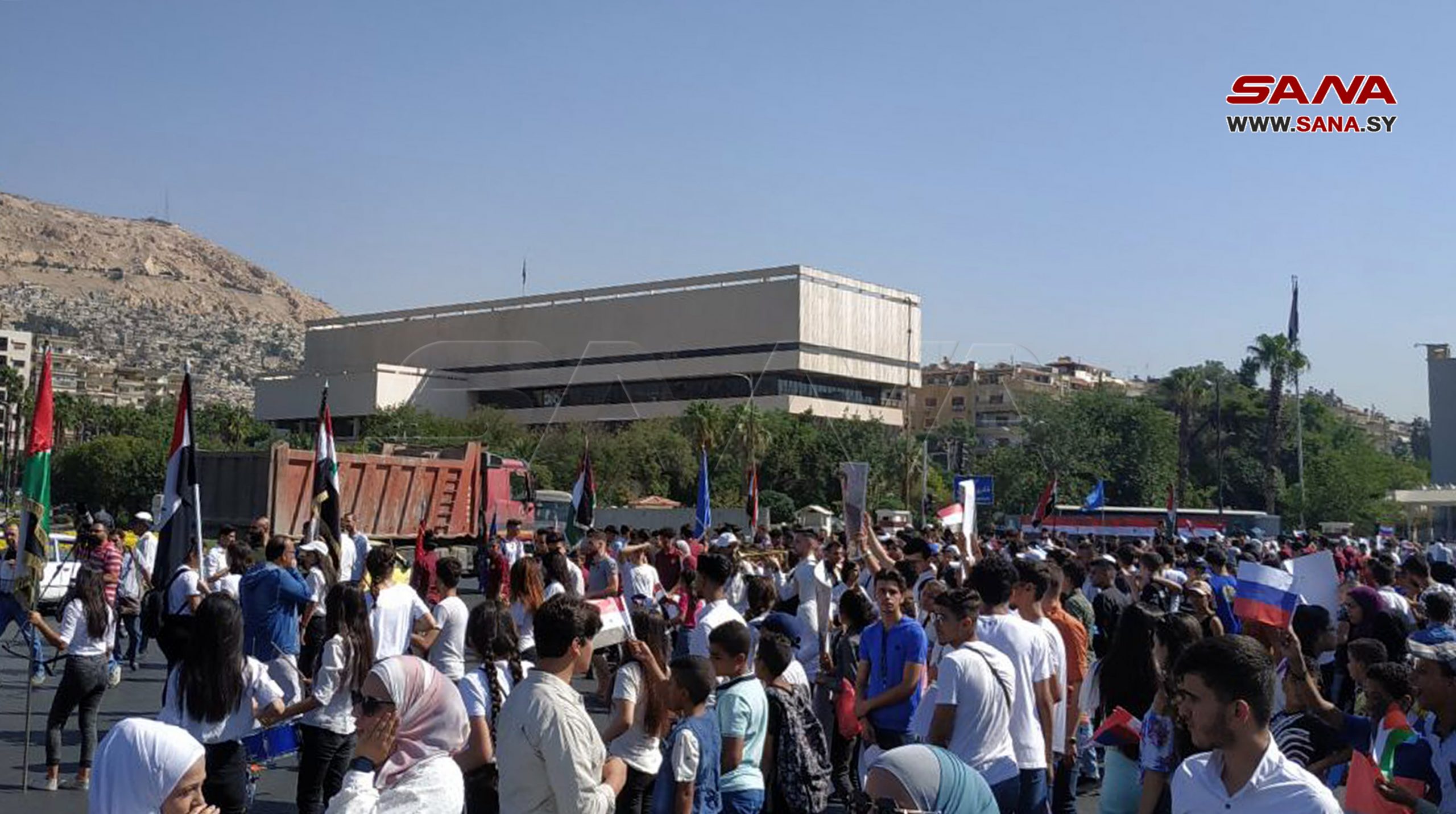 Damasco, 22 ago (SANA) Un ambiente festivo reinó hoy en la Plaza Omeya de la ciudad de Damasco donde se efectuó un conjunto de actividades con motivo del Día de la Bandera Rusa.