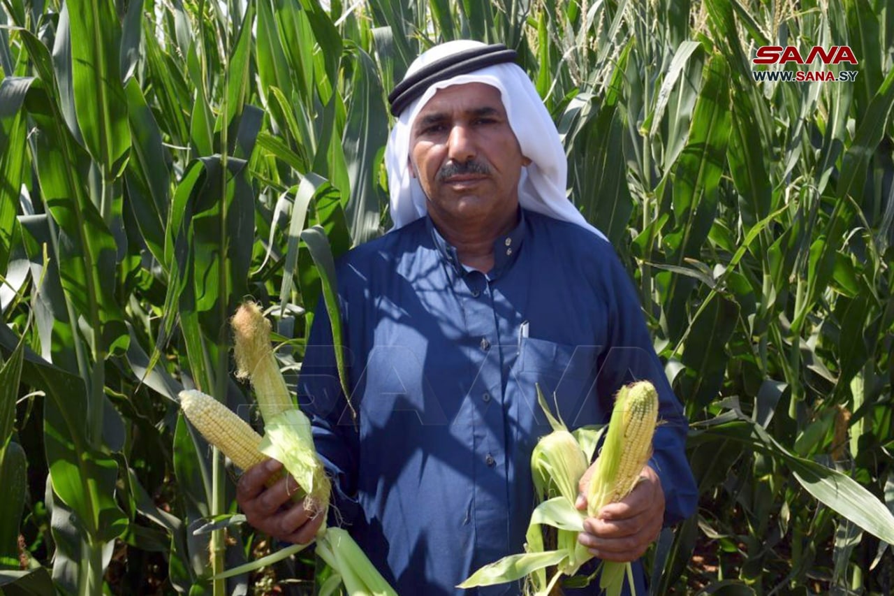 Agricultor sirio desde su campo de maíz en la provincia de Alepo en el norte de Siria