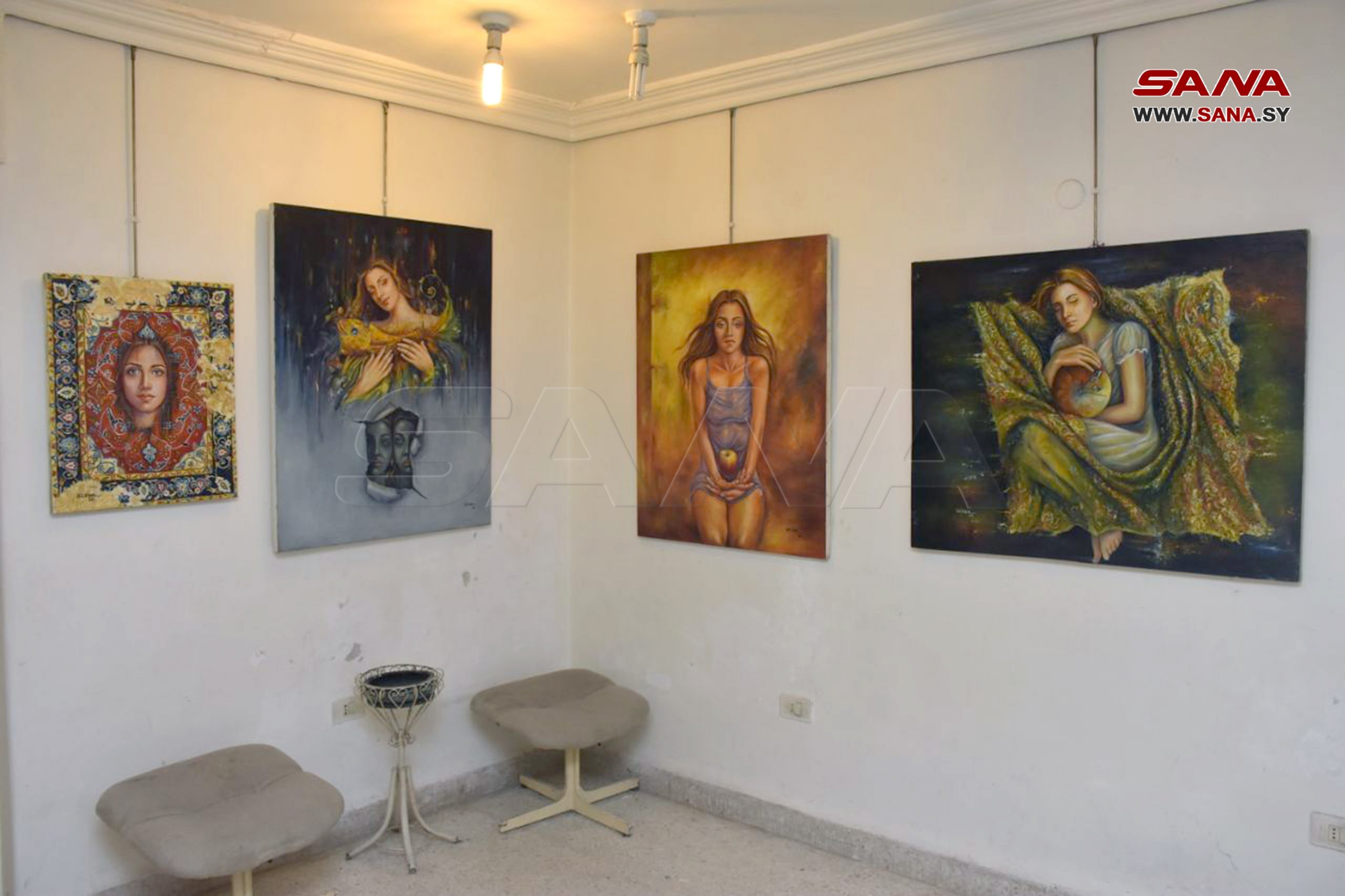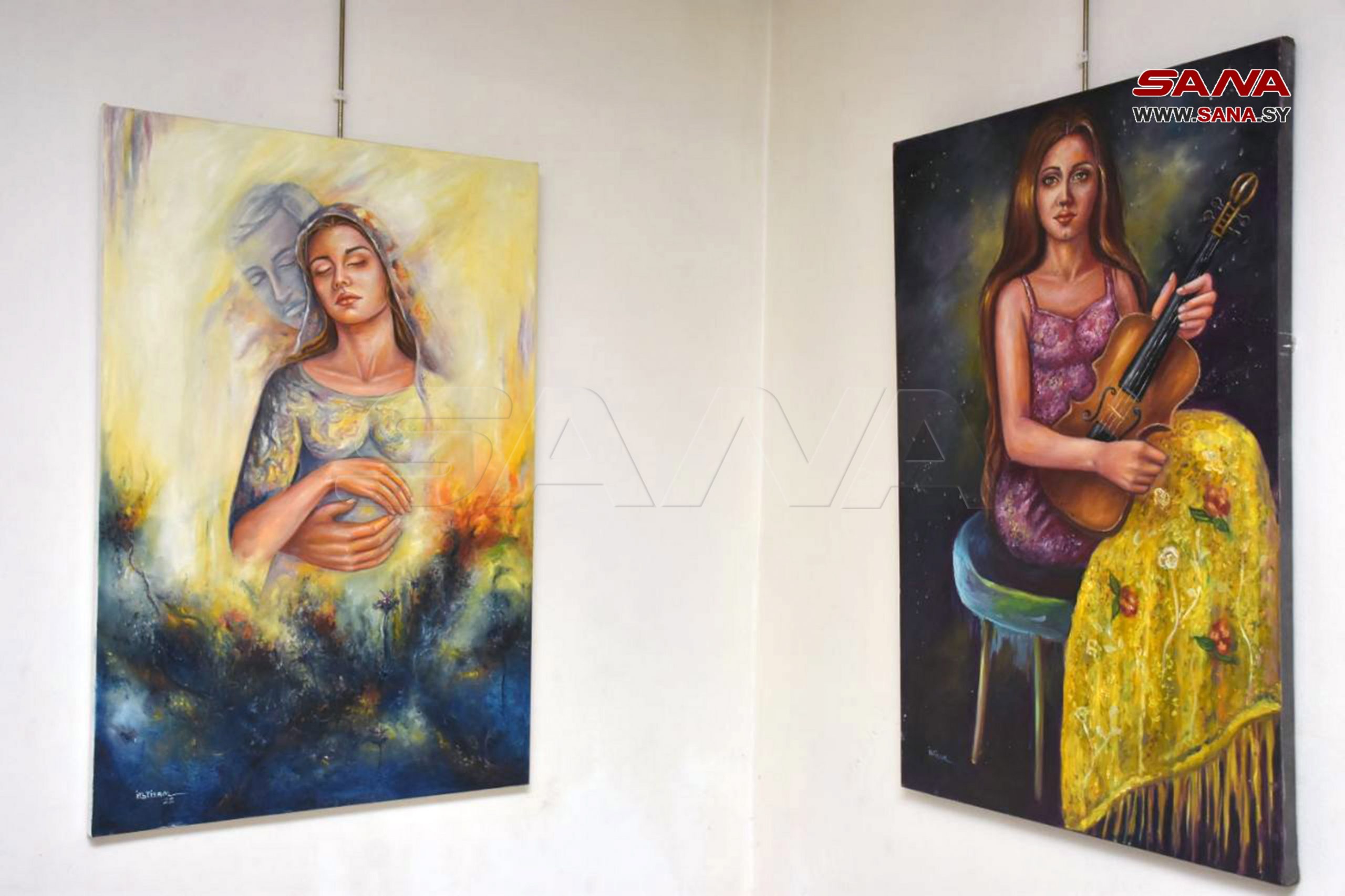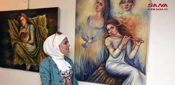 30 pinturas ilustran los sentimientos de las mujeres sirias durante la guerra terrorista y su dolor por la pérdida de sus seres queridos, además de la fuerza de las madres sirias.