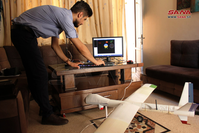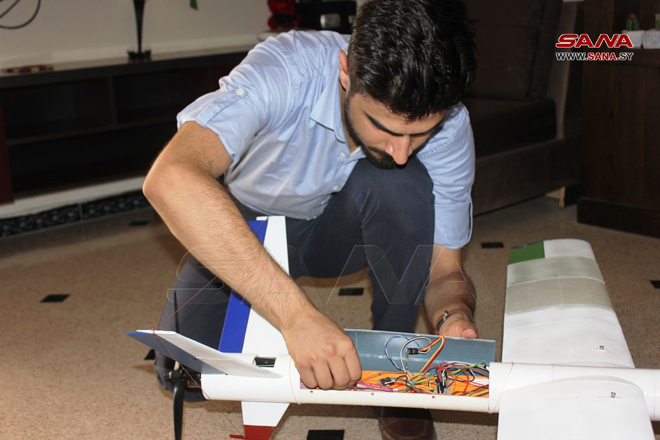 Tartous, 30 ago (SANA) El joven Khader Muhammad de la Facultad de Ingeniería Mecánica y Eléctrica de la Universidad Al-Baath diseñó un vehículo aéreo no tripulado de ala fija que se caracteriza por un sistema de control eficaz y altamente confiable que opera en dos fases: control directo y autonavegación y su radio de acción es de 10 km.