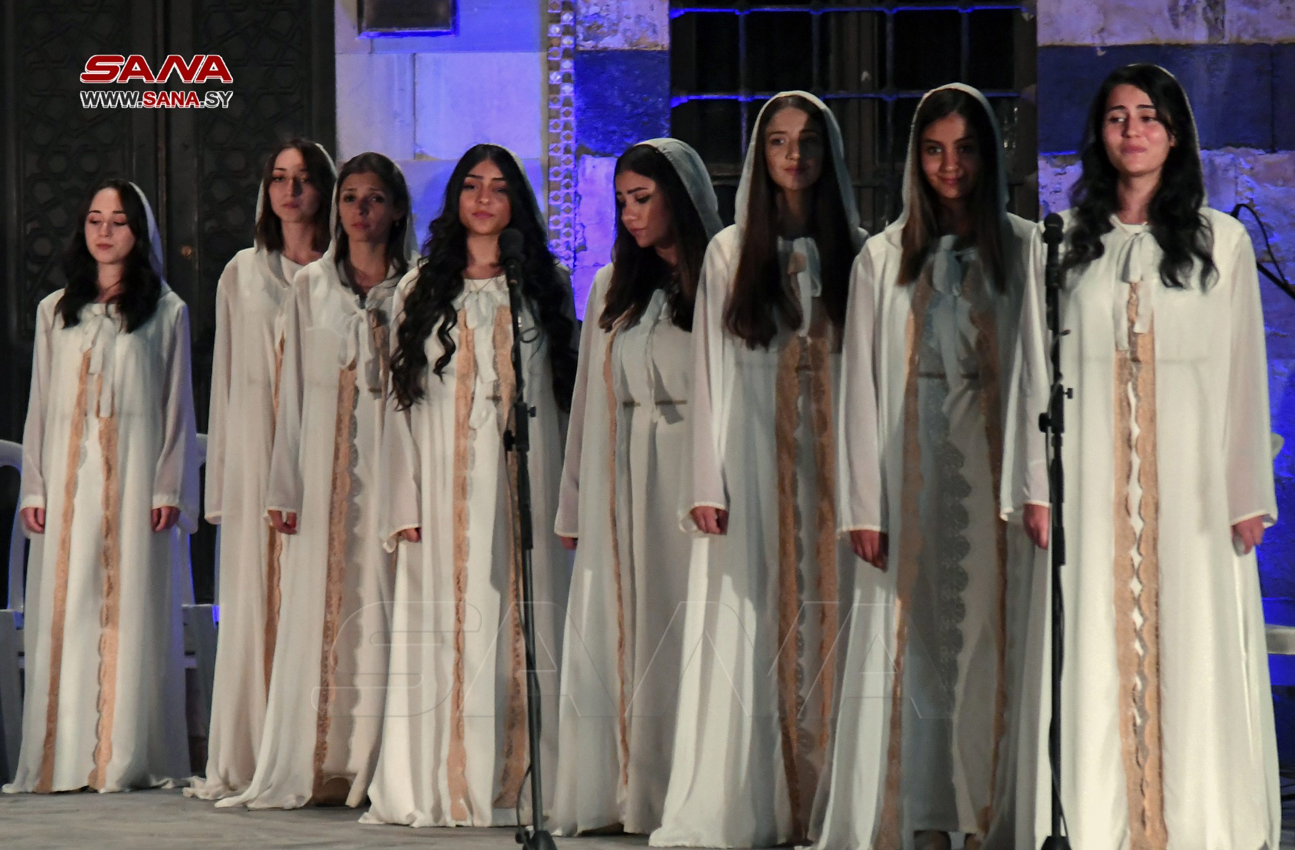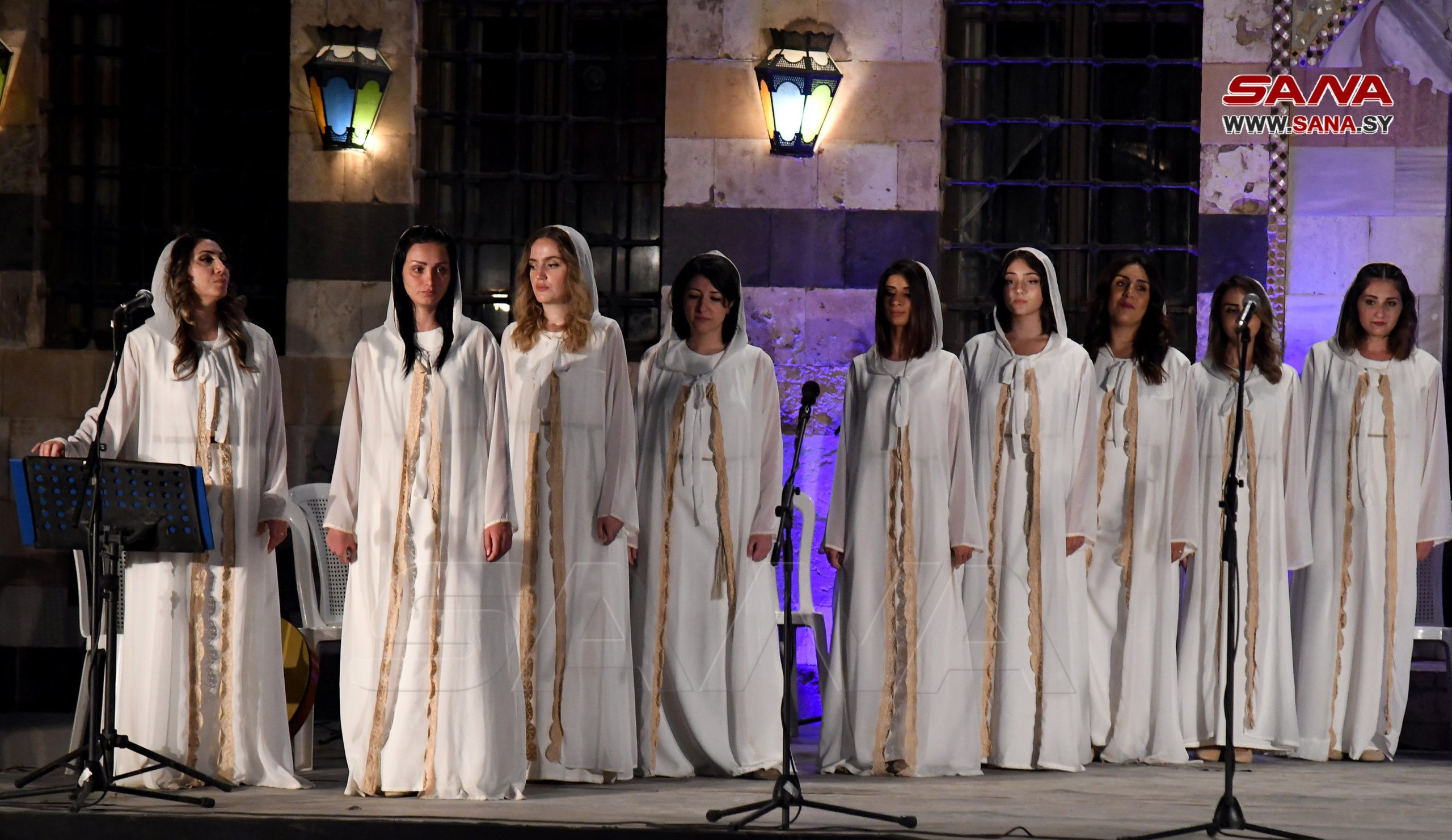 La velada organizada por la Dirección de Teatros y Música del Ministerio de Cultura, en el palacio Azem en la antigua ciudad de Damasco, contó con una maravillosa actuación de las artistas del coro quienes lucieron con sus vestidos blancos que reflejaban serenidad y tranquilidad.
