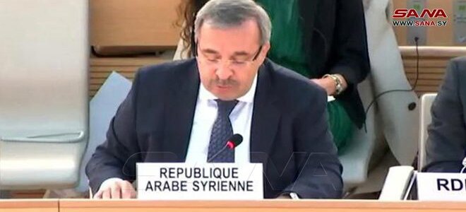“Siria ratifica su rechazo a la resolución no consensuada que creó la Comisión de Investigación sobre la situación en Siria y las resoluciones posteriores relacionadas con la prórroga de su mandato, así como rechaza los informes emitidos por esta Comisión, que atentan contra Siria por consideraciones políticas y para servir a las agendas de los Estados patrocinadores de este Comité”, dijo hoy el embajador Ala en una declaración ante el 51º período de sesiones del CDDH en Ginebra, tema IV, “La situación en Siria”.