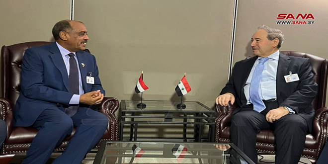 Nueva York, 24 sep (SANA) El ministro de Asuntos Exteriores y Expatriados, Faisal Al-Mekdad, sostuvo un encuentro con su homólogo sudanés Ali Al-Sadiq Ali, en el marco del 77º periodo de sesiones de la Asamblea General de las Naciones Unidas.