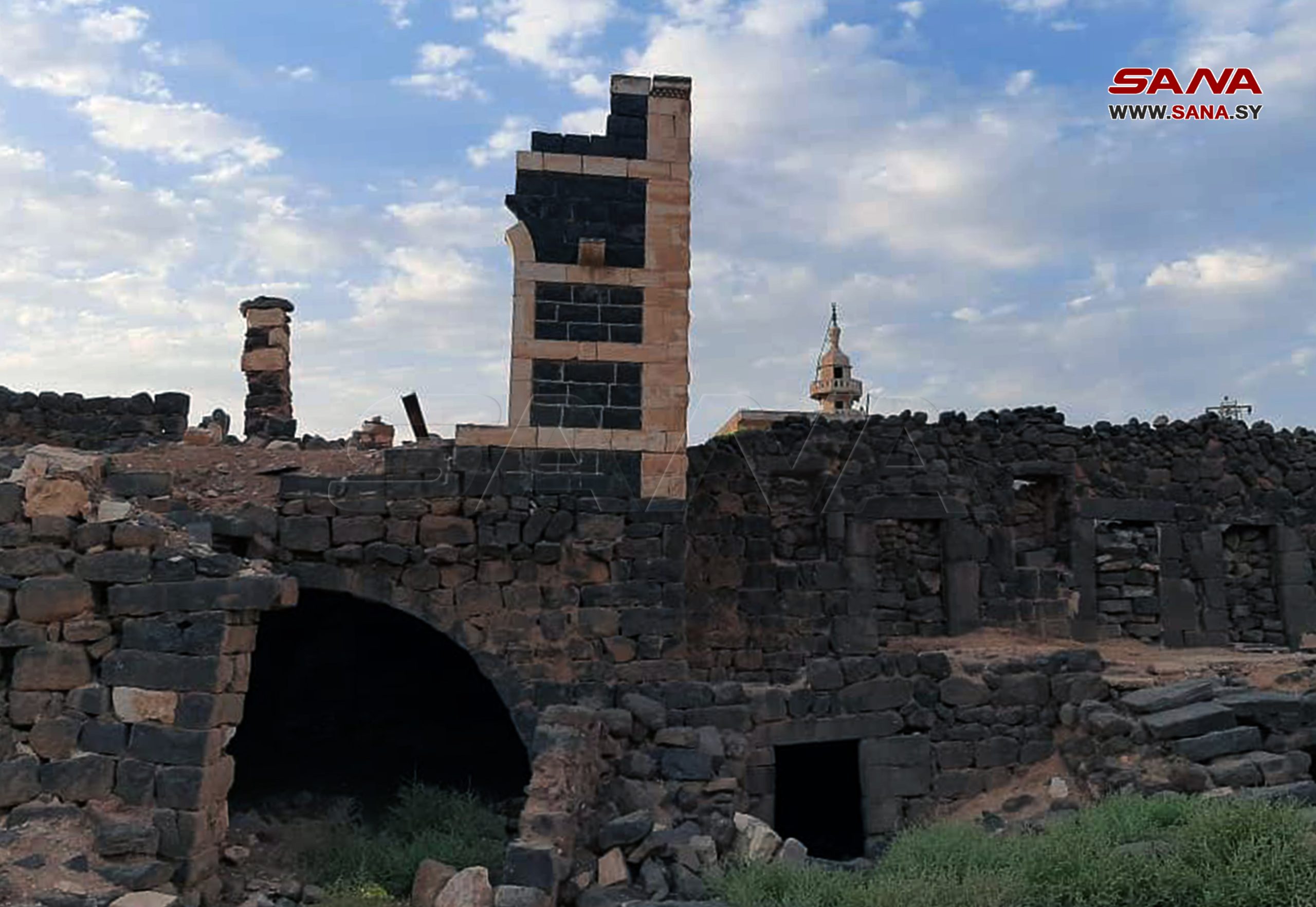 “En esta localidad, hay también casas antiguas de basalto y un cementerio arqueológico, además de una antigua iglesia, ruinas de palacios, arcos y alcántaras que datan de las épocas romana y bizantina”, explicó el jefe del Departamento de Arqueología del municipio de Sanamén, Basel al-Jahmani.