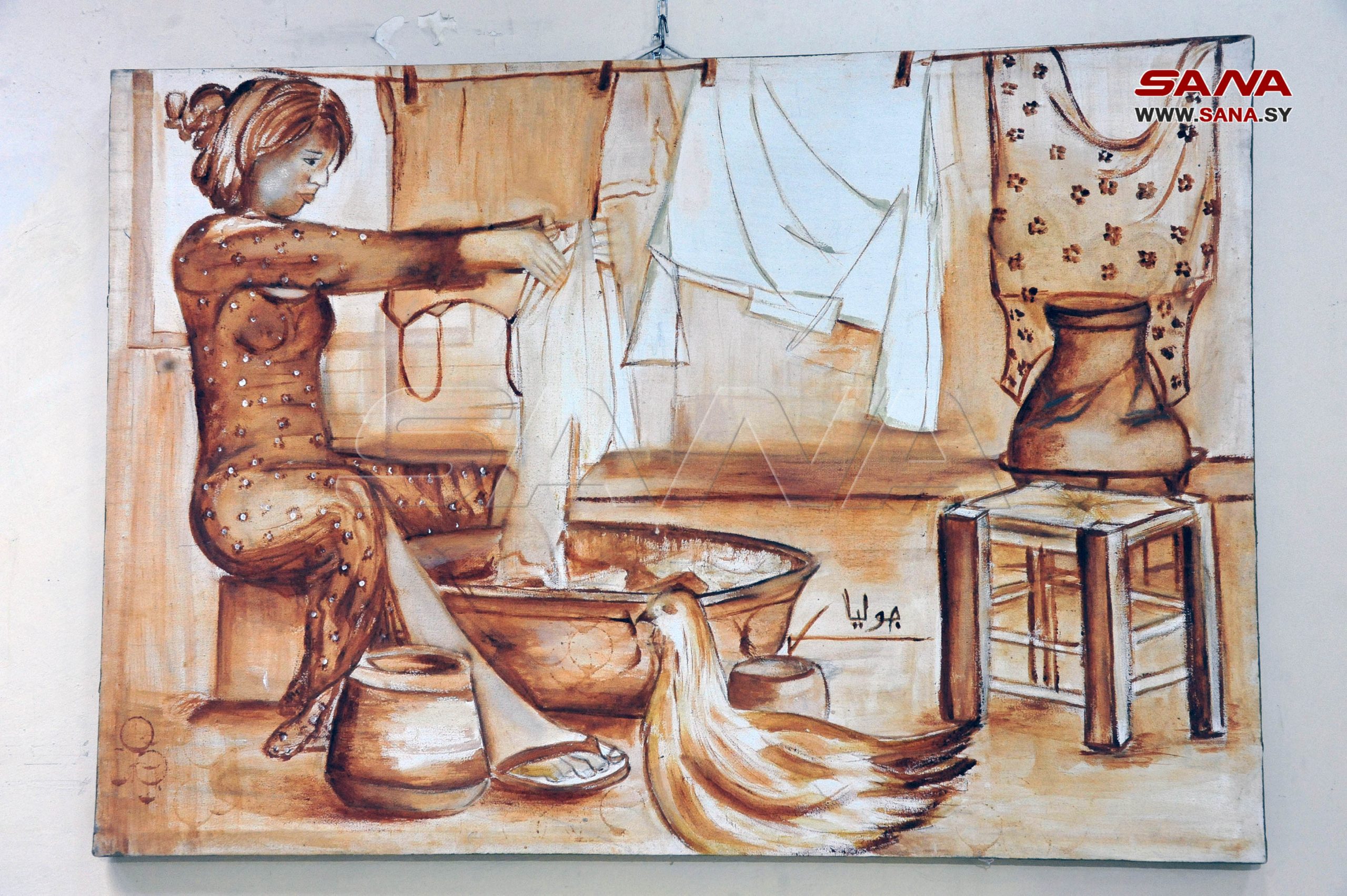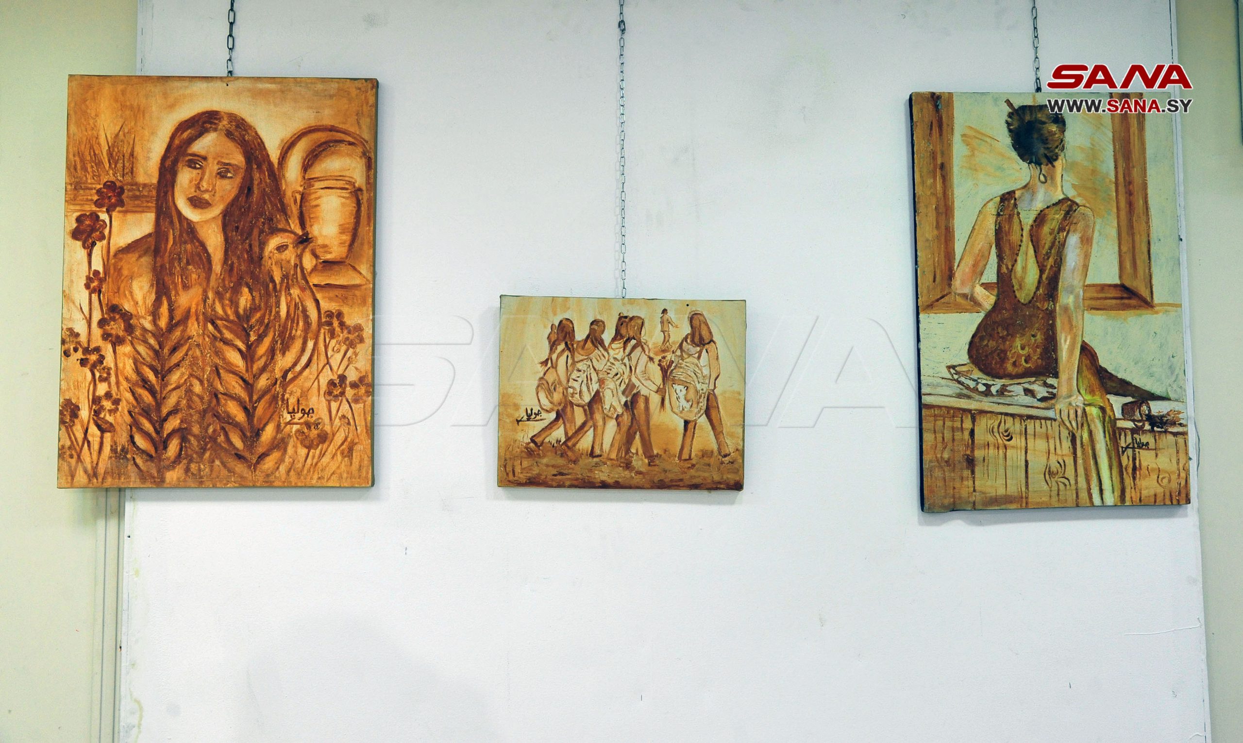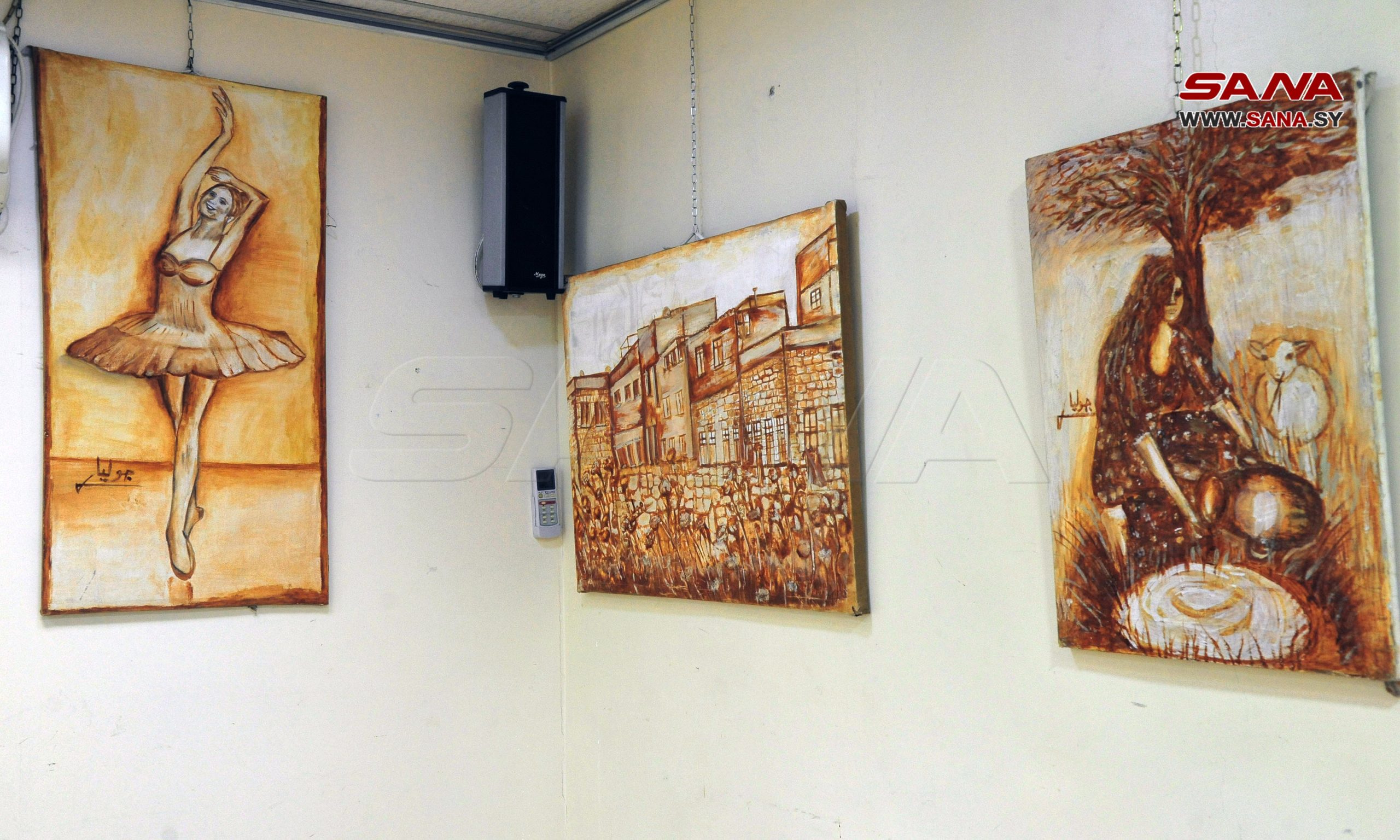 Damasco, 26 sep (SANA) Con 30 cuadros hechos con tierra y agua, la artista plástica Julia Saeed, pudo reflejar su amor por su patria a través de una exposición artística bajo el nombre (Tierra y Nostalgia) en la capital Damasco.