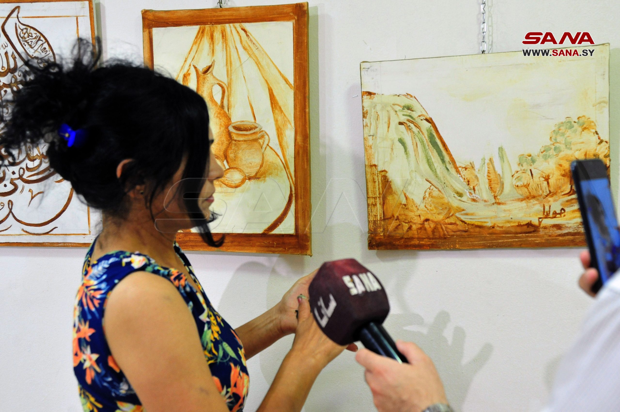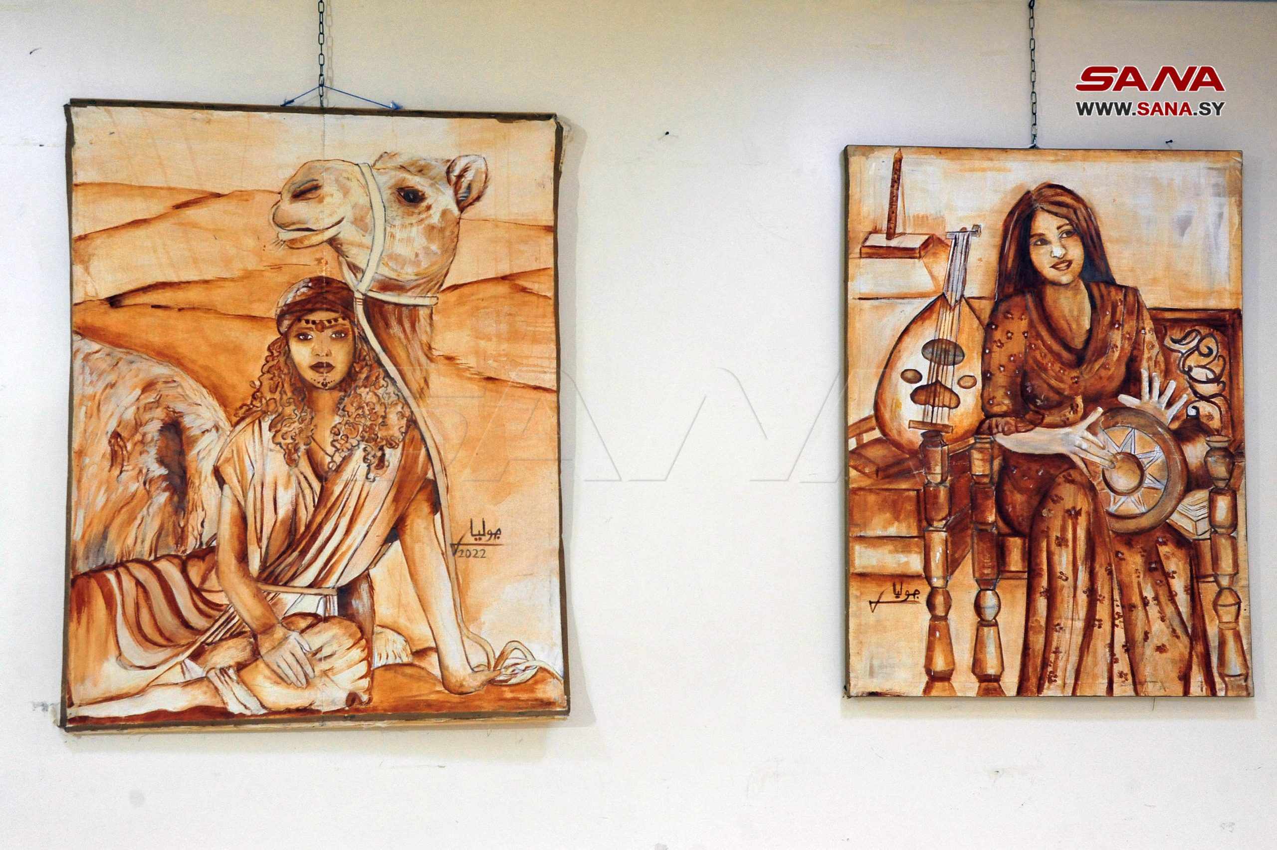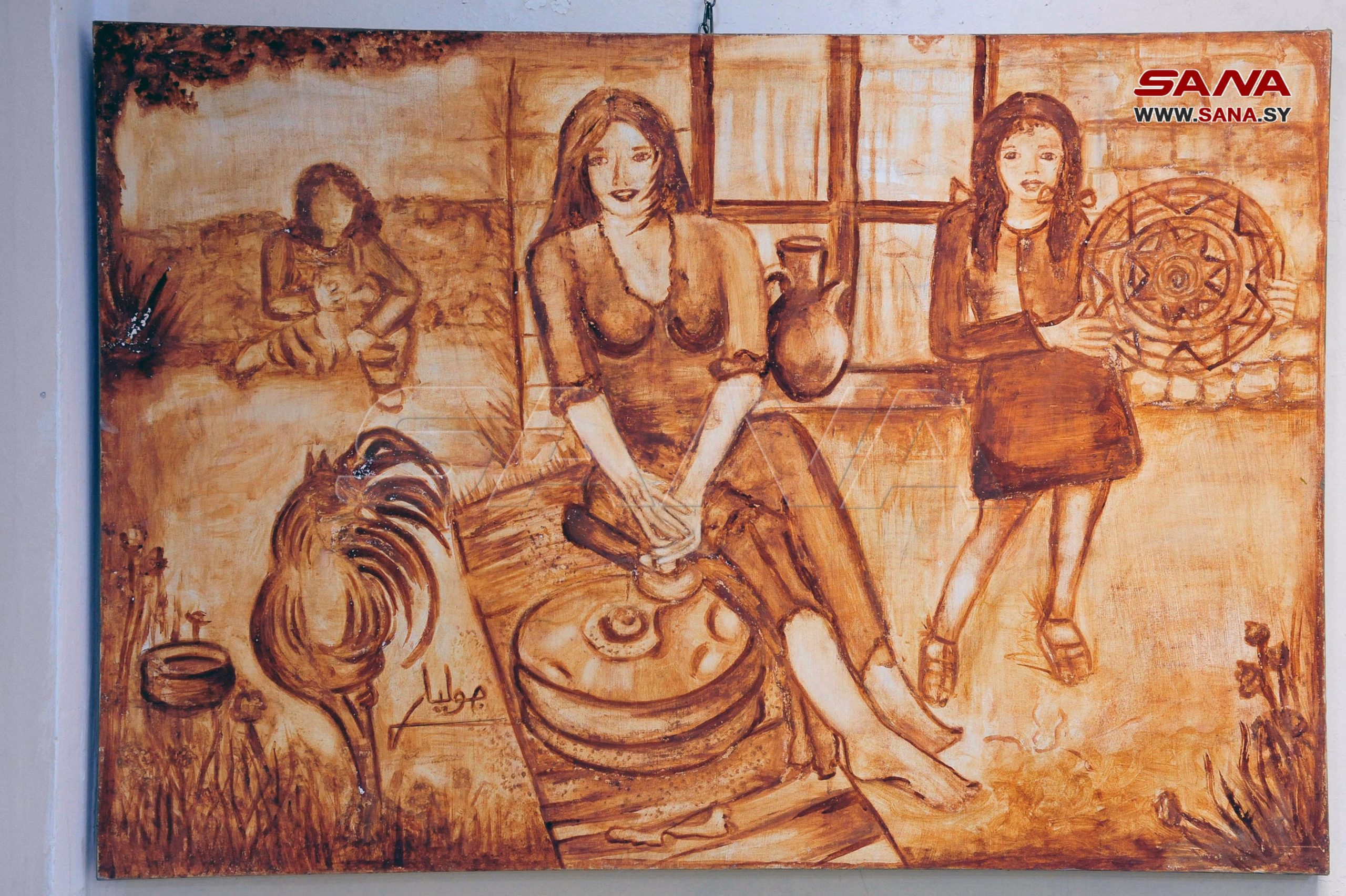 Damasco, 26 sep (SANA) Con 30 cuadros hechos con tierra y agua, la artista plástica Julia Saeed, pudo reflejar su amor por su patria a través de una exposición artística bajo el nombre (Tierra y Nostalgia) en la capital Damasco.