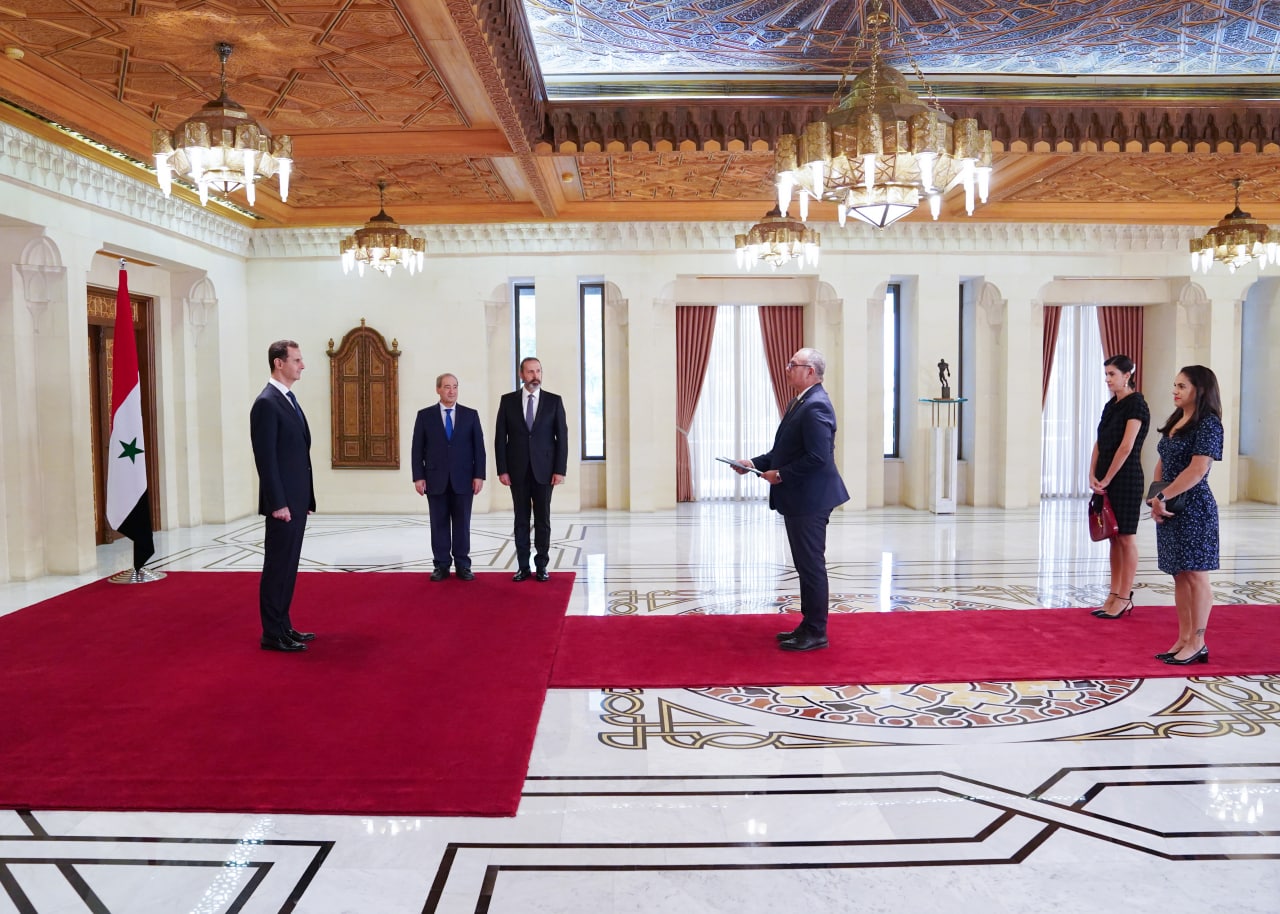 Damasco, 05 oct (SANA) El presidente, Bashar al-Assad recibió este miércoles, las cartas credenciales de José Gregorio Biomorgi Muzattiz y André Luiz Azevedo dos Santos como embajadores Extraordinarios y Plenipotenciarios de la República Bolivariana de Venezuela y la República Federal de Brasil respectivamente.