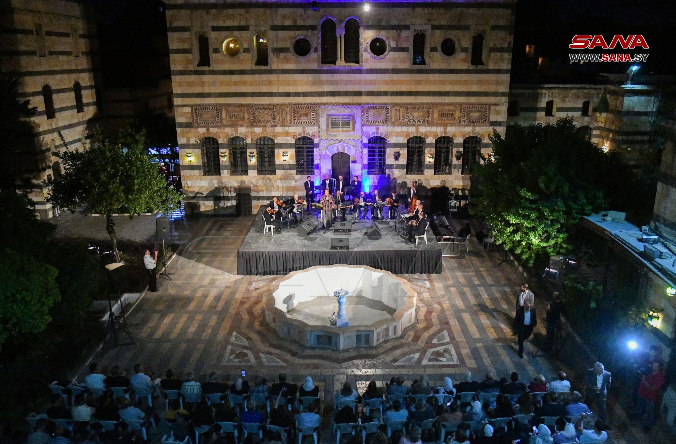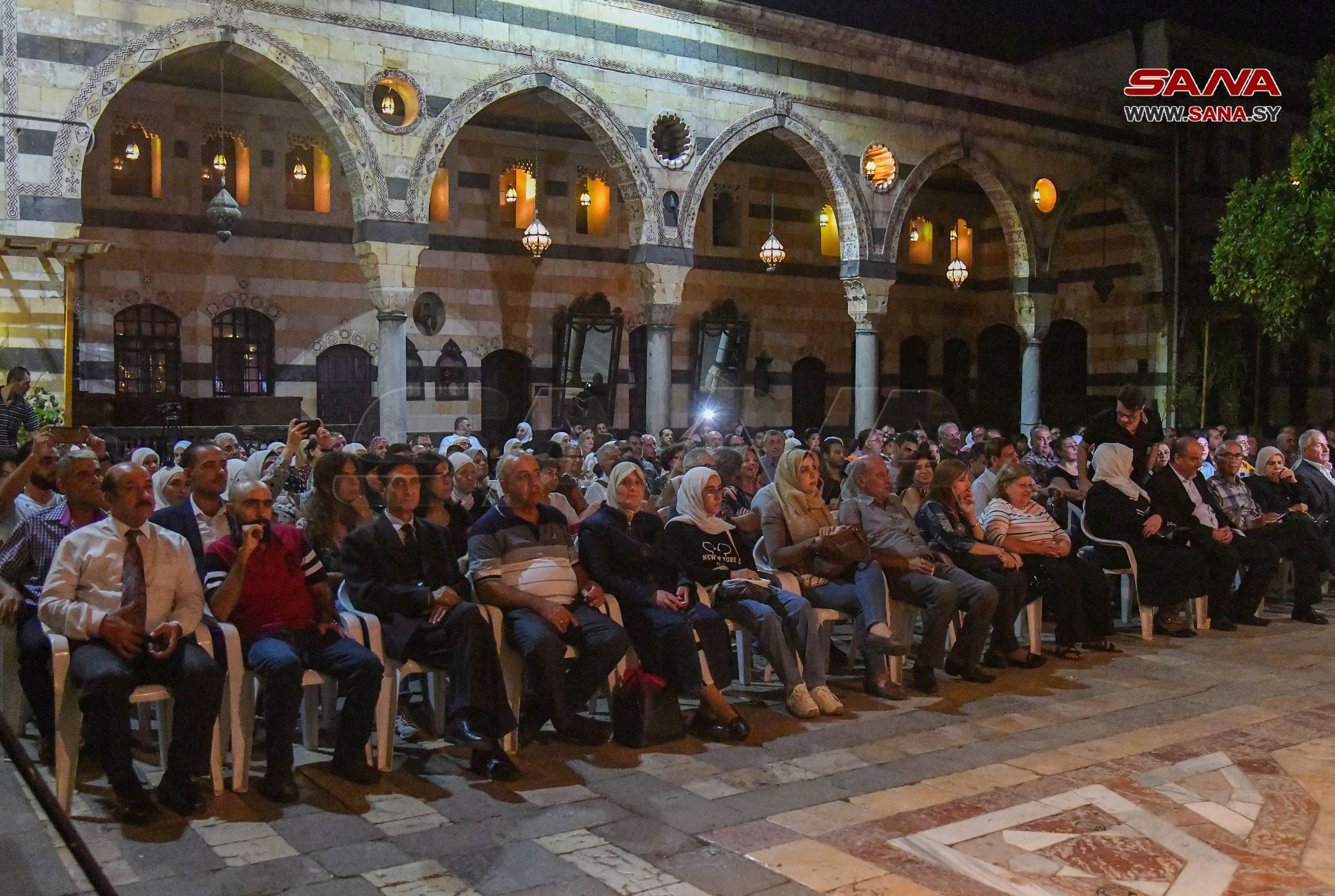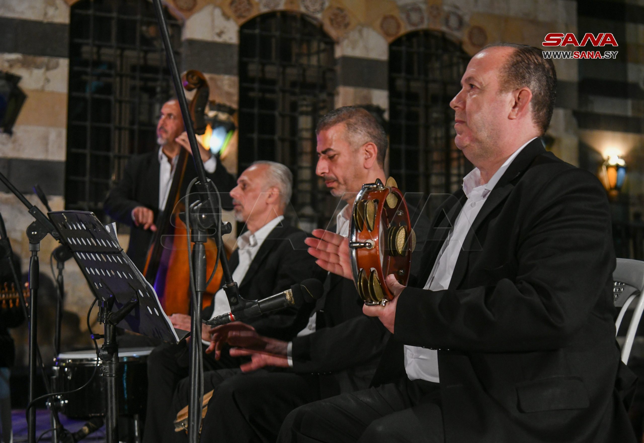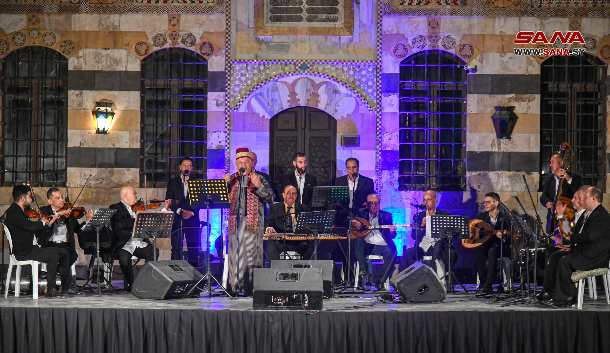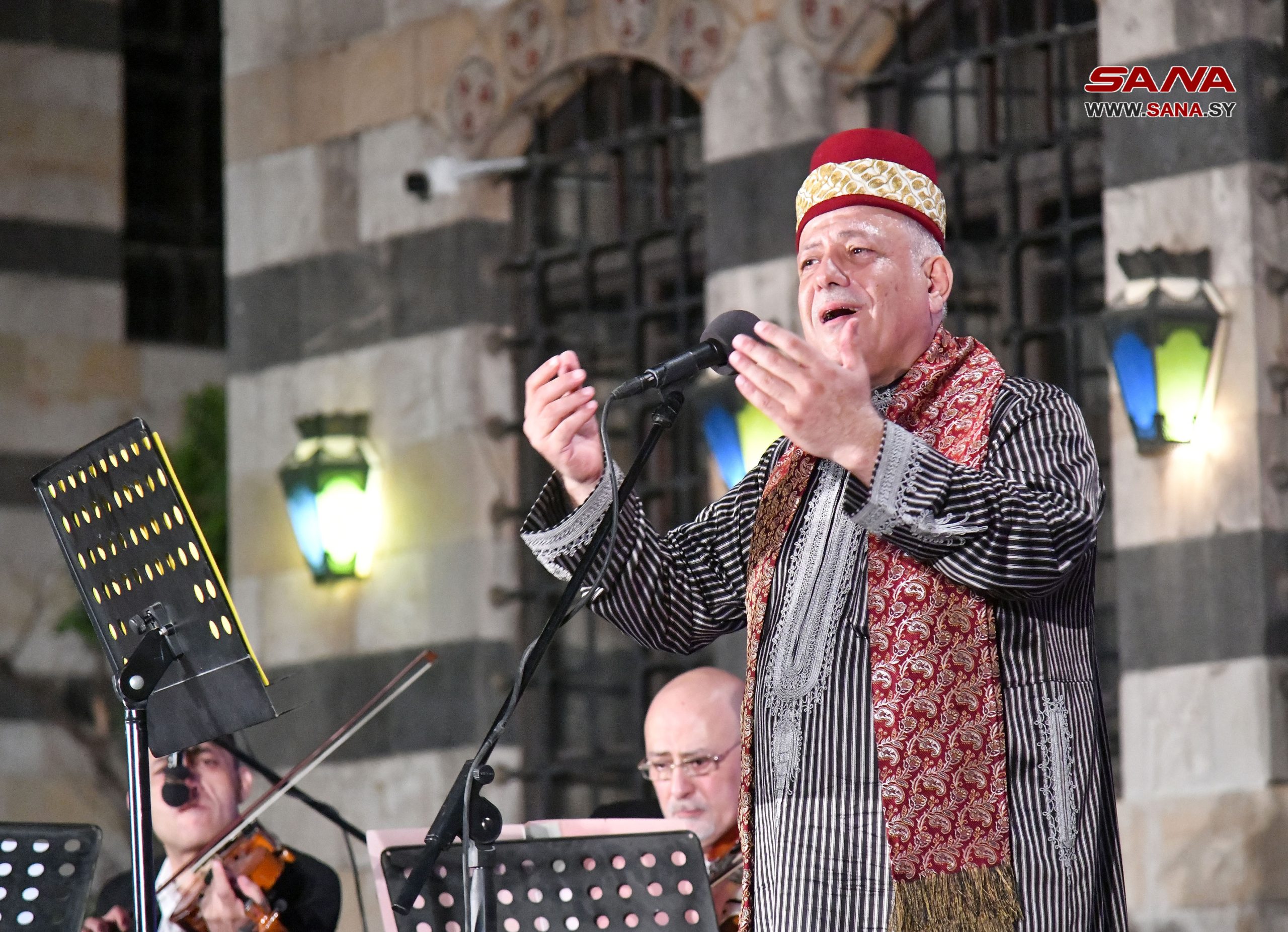 En el recital, el cantante Diab Sukkari, interpretó moaxajas sirias cuyas melodías resonaron en la Mezquita Omeyas y la calle recta Medhat Pasha, cerca del lugar del evento.