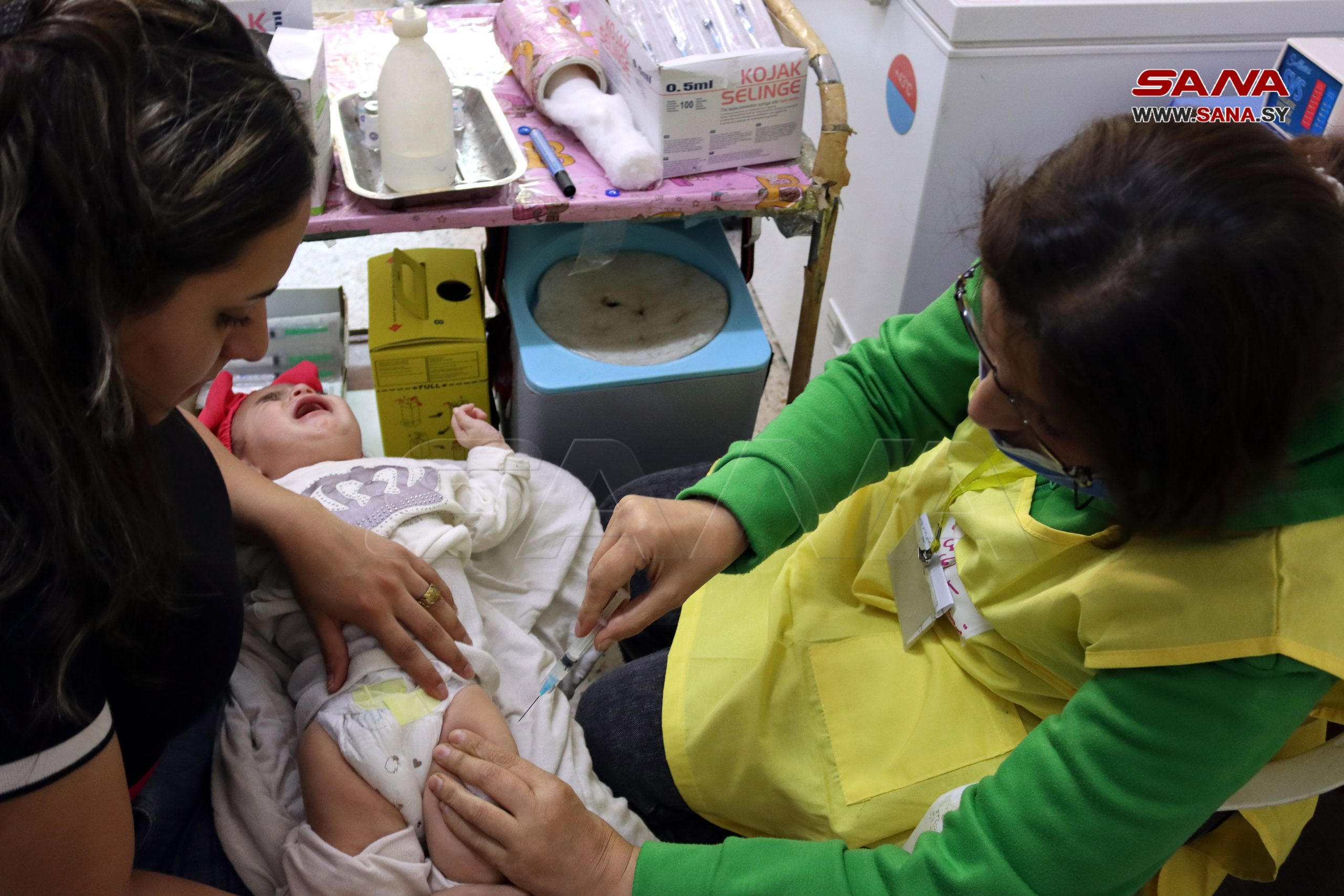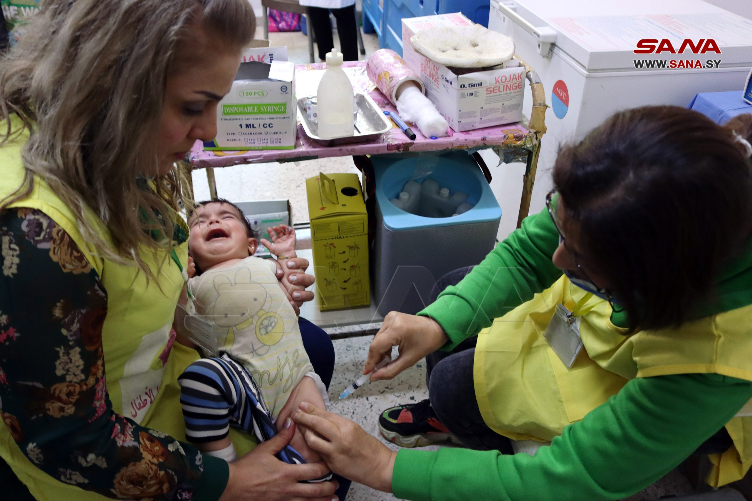 El Ministerio de Salud lanza anualmente una campaña nacional de vacunación contra el sarampión, la rubéola y la poliomielitis que cubre todas las provincias de Siria y sus campos.