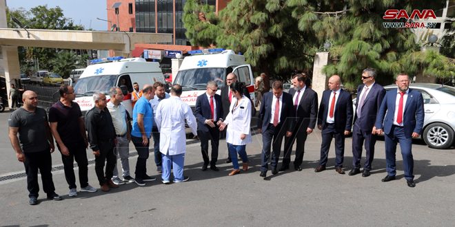Latakia, 17 oct (SANA) En el marco de la quinta reunión conjunta sirio-rusa sobre los resultados de la Conferencia Internacional sobre el Retorno de los Refugiados y Desplazados Sirios, una delegación rusa encabezada por Peter Panikov, vicegobernador de la provincia de Nizhni Nóvgorod de la Federación de Rusia, durante su visita a la gobernación de Latakia, presentó dos ambulancias a la Dirección de Salud.
