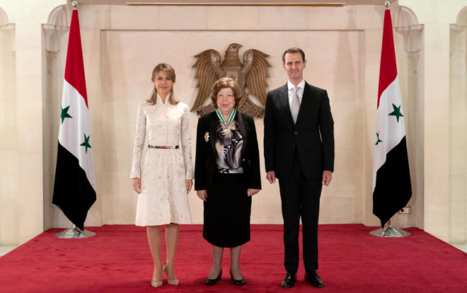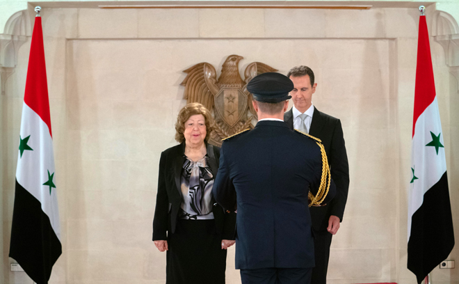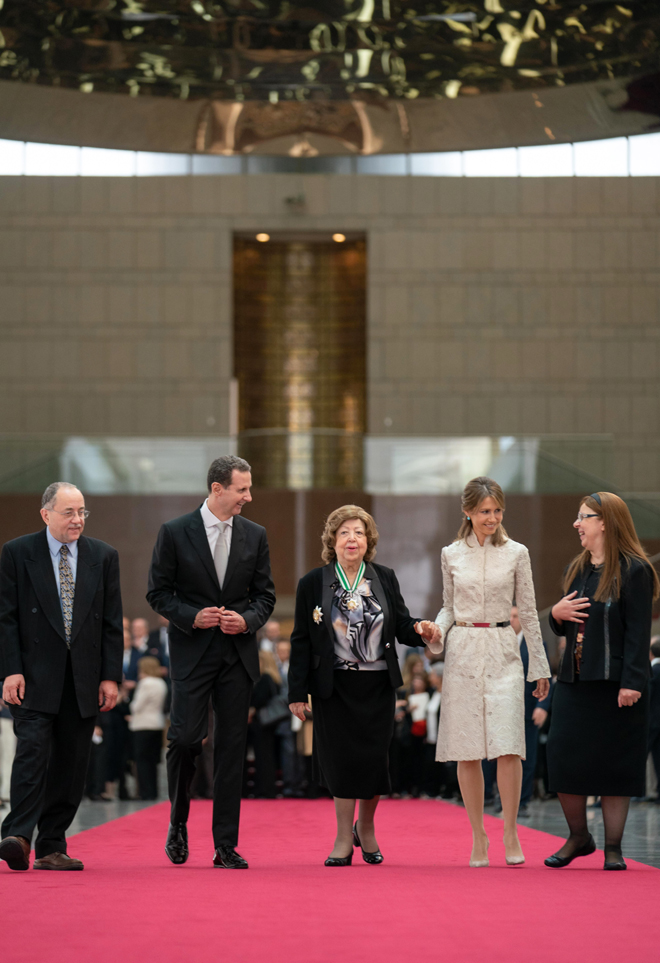 Damasco, 01 nov (SANA) El presidente Bashar Al-Assad, otorgó la Medalla al Mérito Sirio de excelente grado a la vicepresidenta de la República, Najah al-Attar en reconocimiento a su carrera y sus continuos aportes a la patria durante décadas.